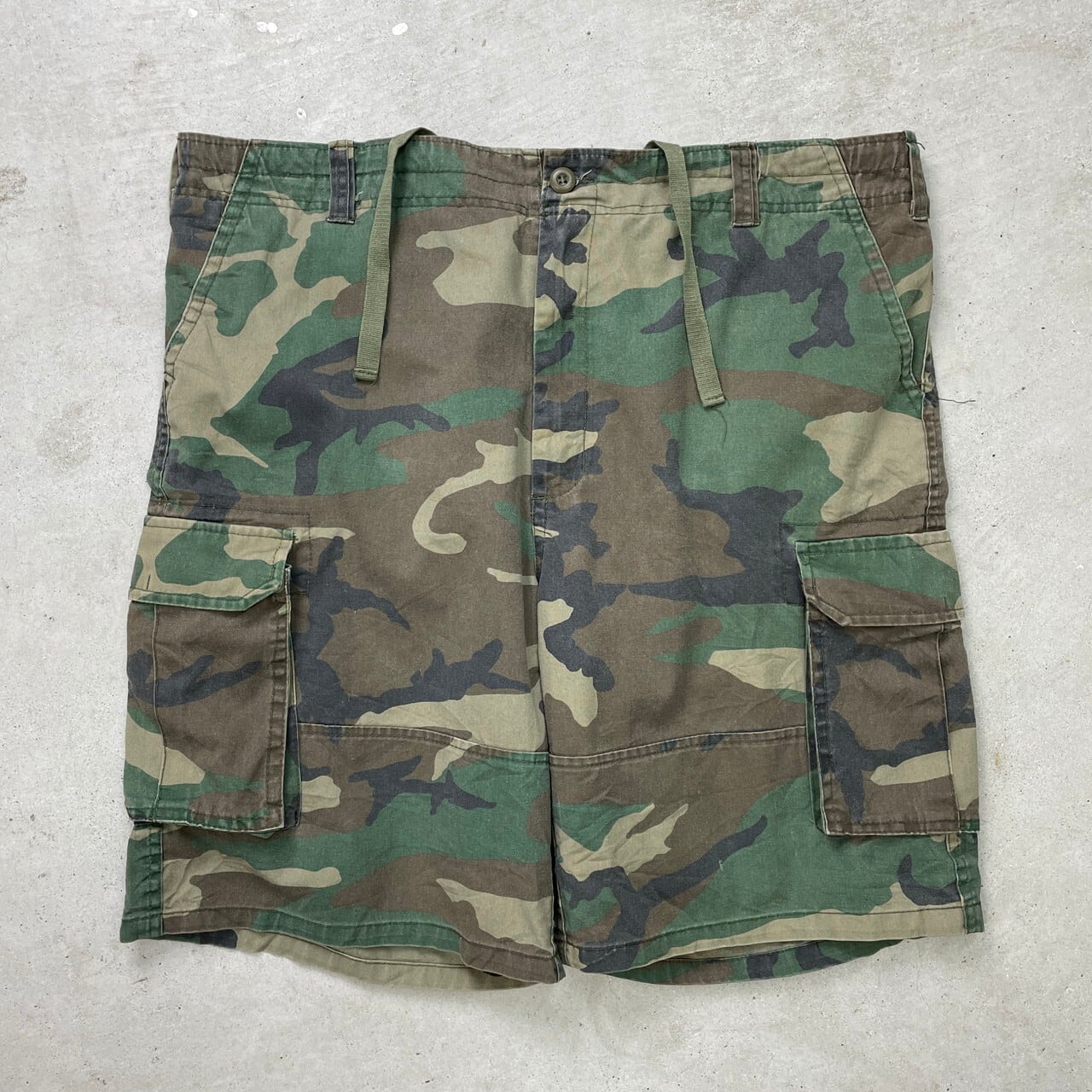 ■民間品 ウッドランドカモ カーゴショートパンツ ハーフパンツ メンズW43 古着 ショーツ ミリタリー カモフラ ビッグサイズ 大きいサイズ【ショートパンツ】/マルチカラー