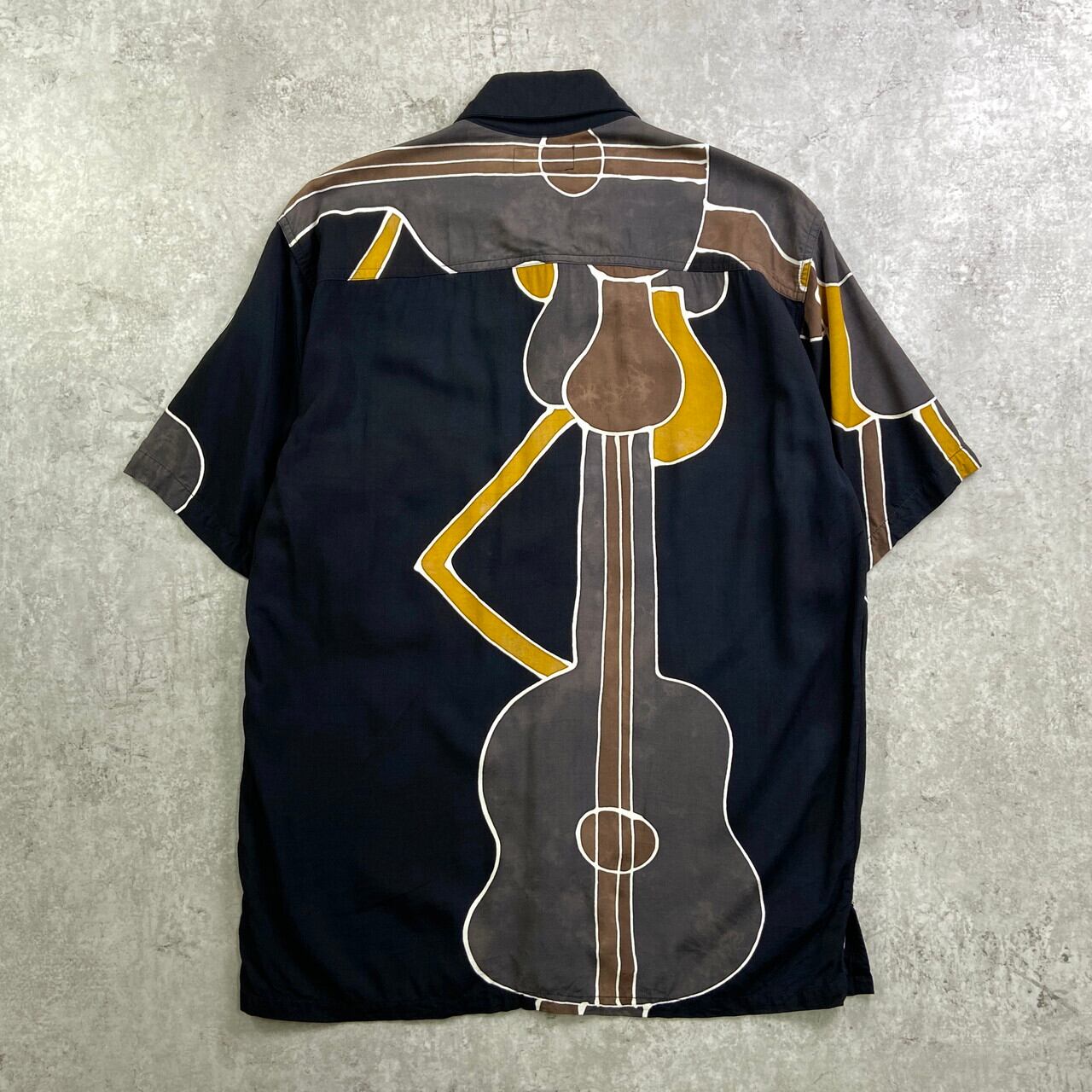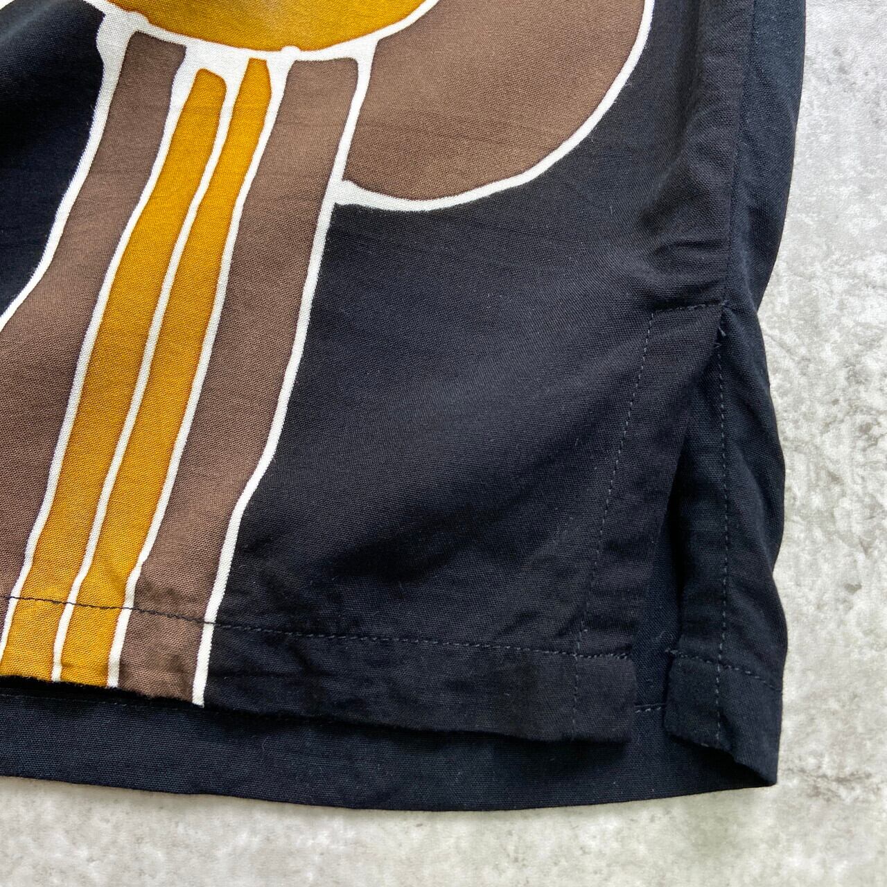 TROPICAL TANTRUM 半袖 総柄シャツ ムラ染め レーヨン メンズL相当 古着 ボックスシャツ アメカジ 黒 マスタードイエロー カラシ色【半袖シャツ】/ブラック