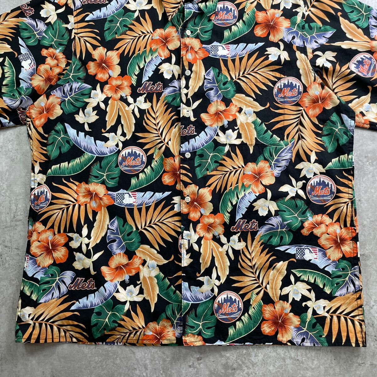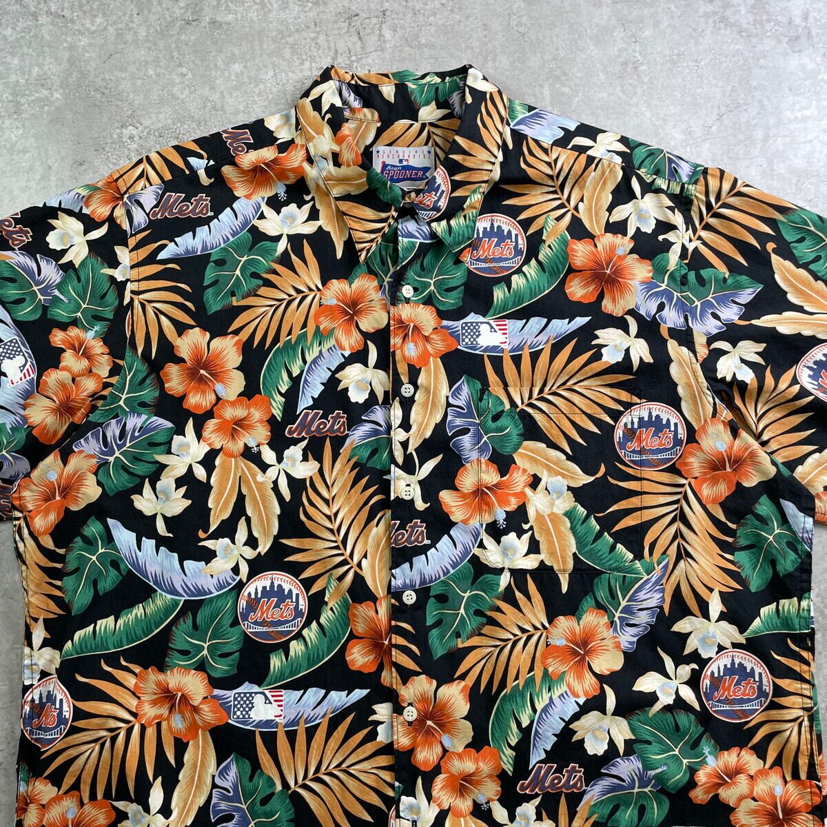 ■00年代 ハワイ製 reyn spooner×MLB レインスプーナー アロハシャツ 総柄 メンズXL 古着 00s VINTAGE ヴィンテージ ハワイアンシャツ New York Mets ニューヨークメッツ【半袖シャツ】/マルチカラー