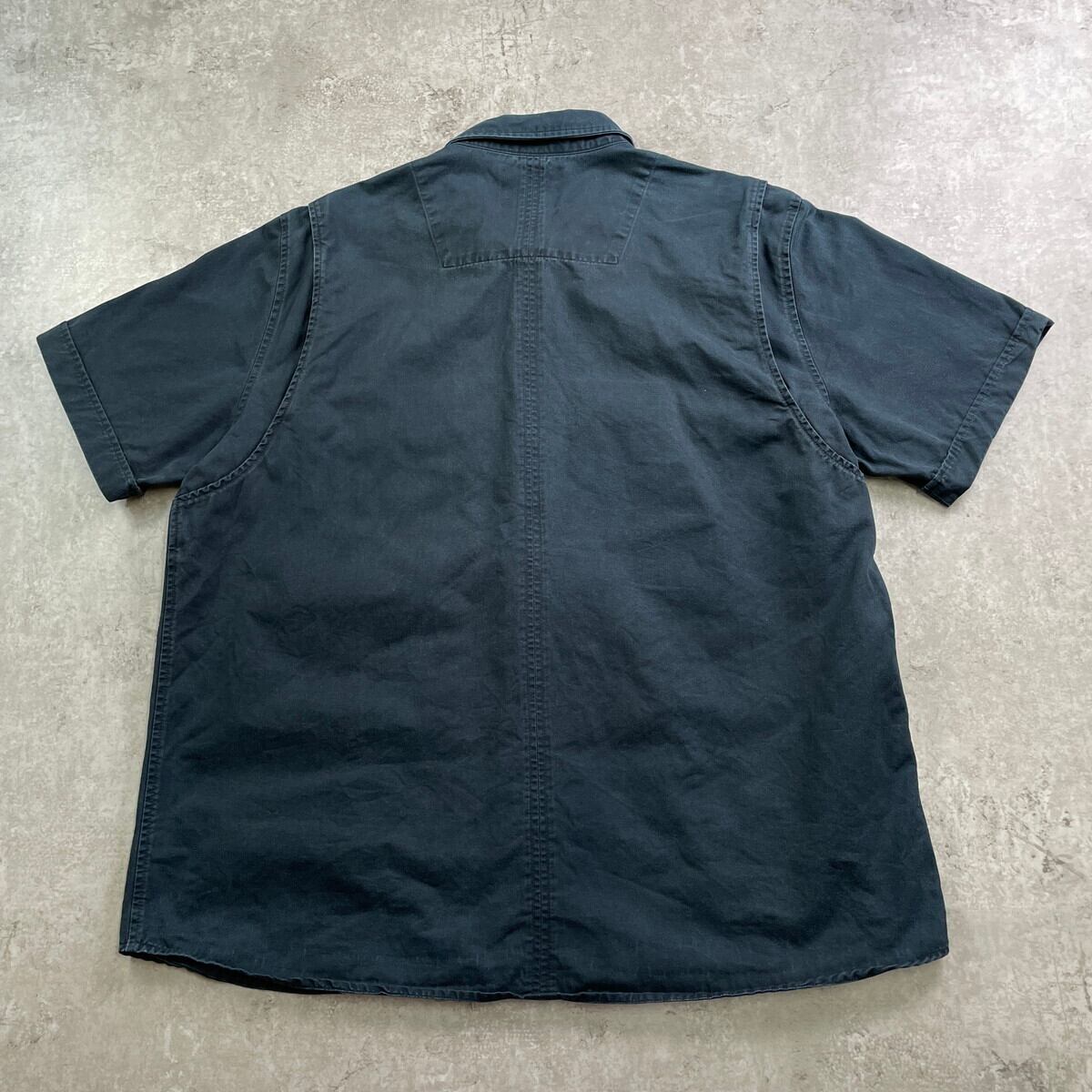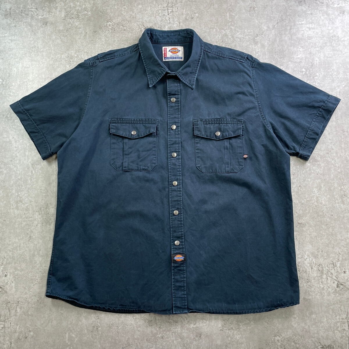■Dickies ディッキーズ 半袖 ワークシャツ メンズXL 古着 スナップボタン 紺色【半袖シャツ】/ネイビー