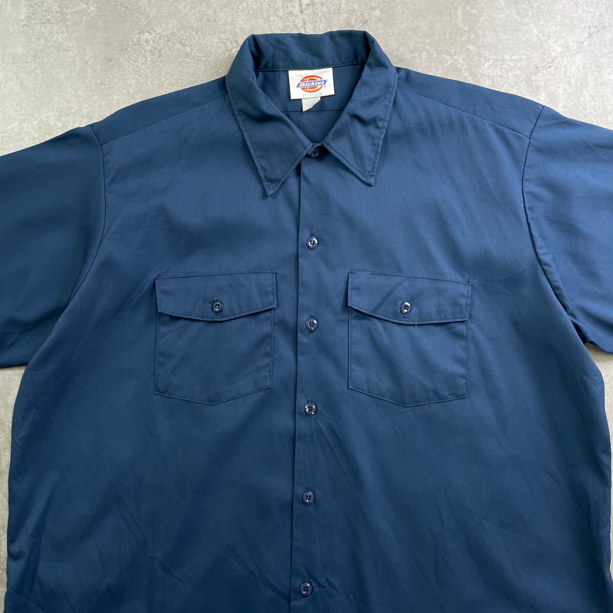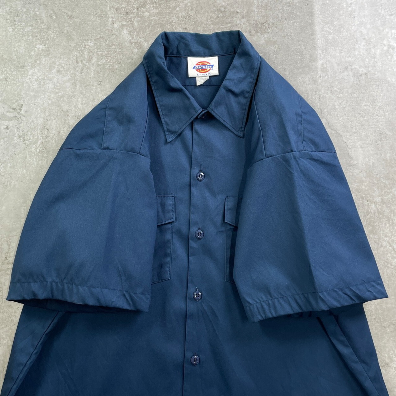 ■90年代 USA製 Dickies ディッキーズ 半袖 ワークシャツ メンズXL 古着 90s ヴィンテージ VINTAGE アメカジ 紺色【半袖シャツ】/ネイビー
