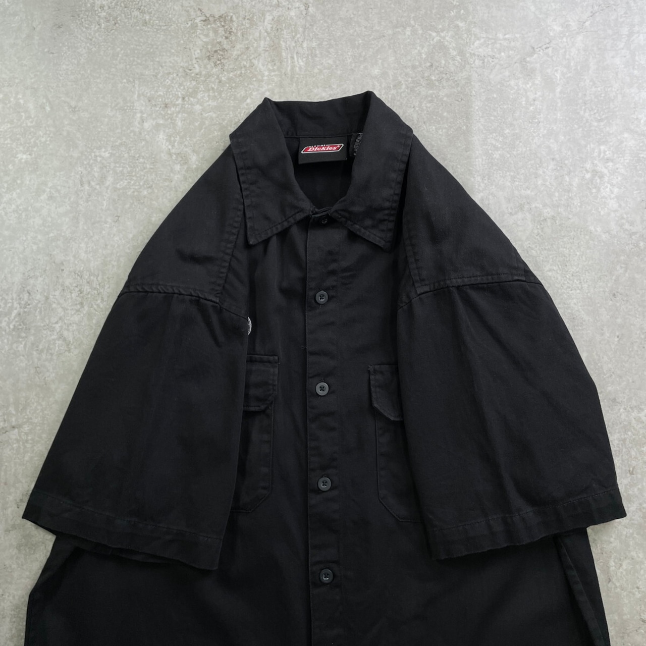 ■Dickies ディッキーズ ロゴワッペン 半袖 ワークシャツ メンズM 古着 黒【半袖シャツ】/ブラック