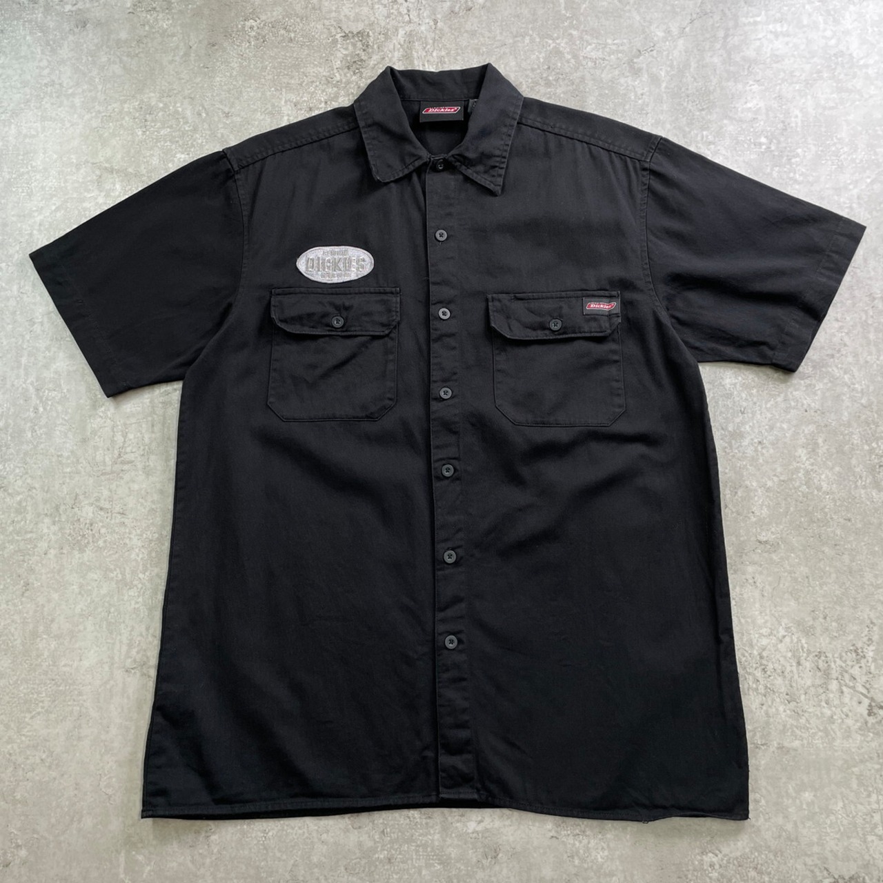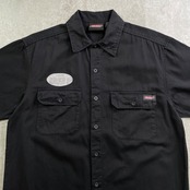 Dickies ディッキーズ ロゴワッペン 半袖 ワークシャツ メンズM 古着 黒【半袖シャツ】/ブラック