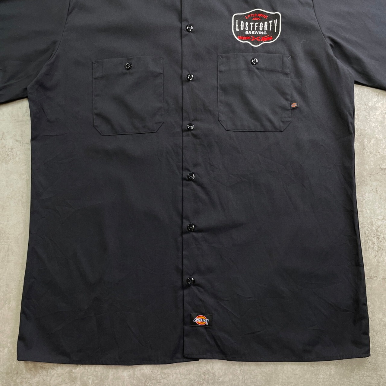 Dickies ディッキーズ LOSTFORTY 企業ロゴワッペン 半袖 ワークシャツ メンズL 古着 アドバタイジング バックプリント 黒【半袖シャツ】/ブラック