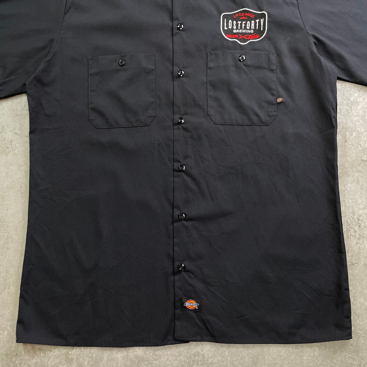 ■Dickies ディッキーズ LOSTFORTY 企業ロゴワッペン 半袖 ワークシャツ メンズL 古着 アドバタイジング バックプリント 黒【半袖シャツ】/ブラック