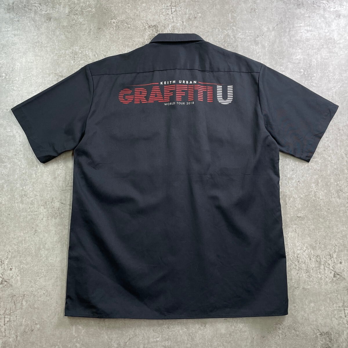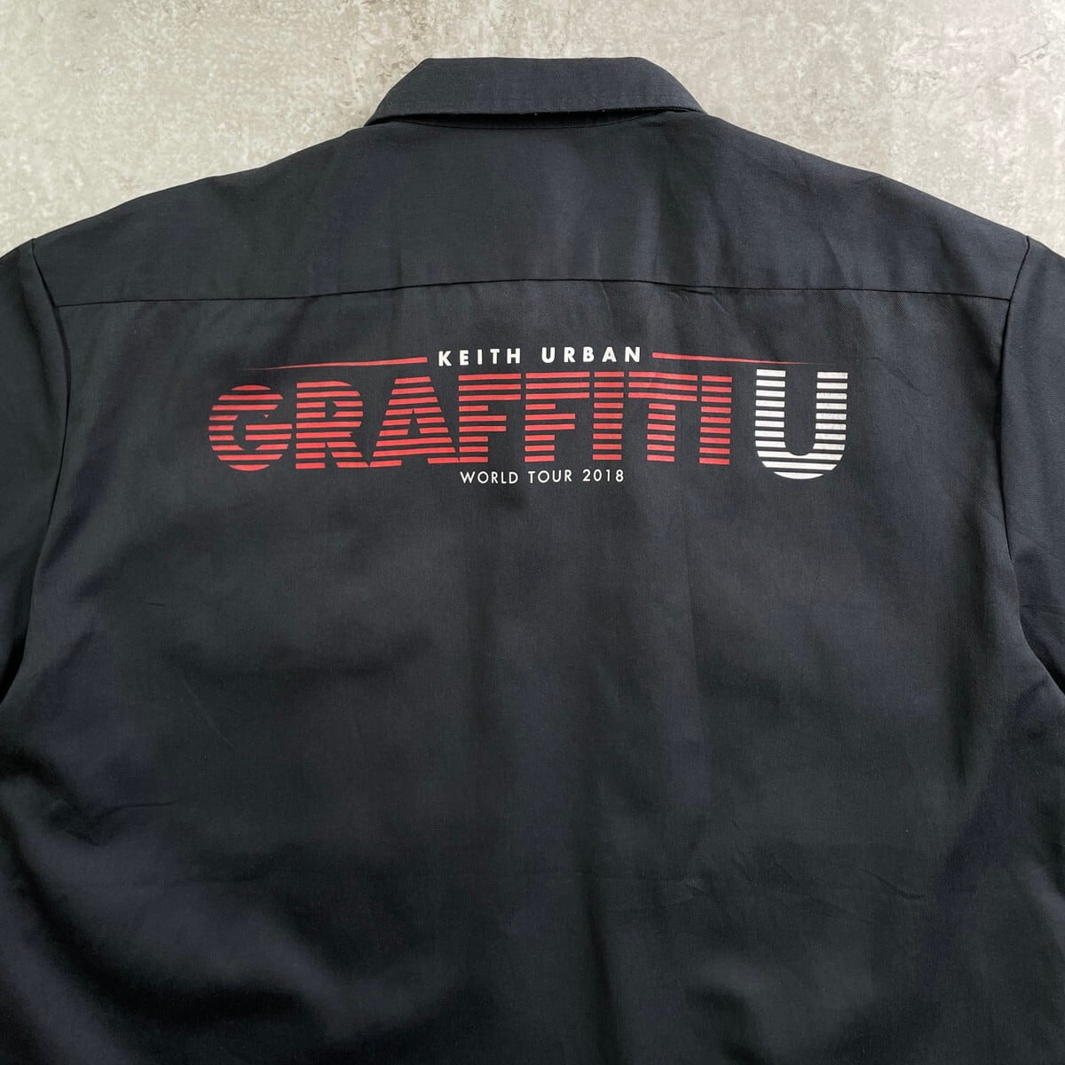 ■Dickies ディッキーズ KEITH URBAN キースアーバン GRAFFITI U ワールドツアー バンドプリント 半袖 ワークシャツ メンズL 古着 アーティスト バックプリント 黒【半袖シャツ】/ブラック