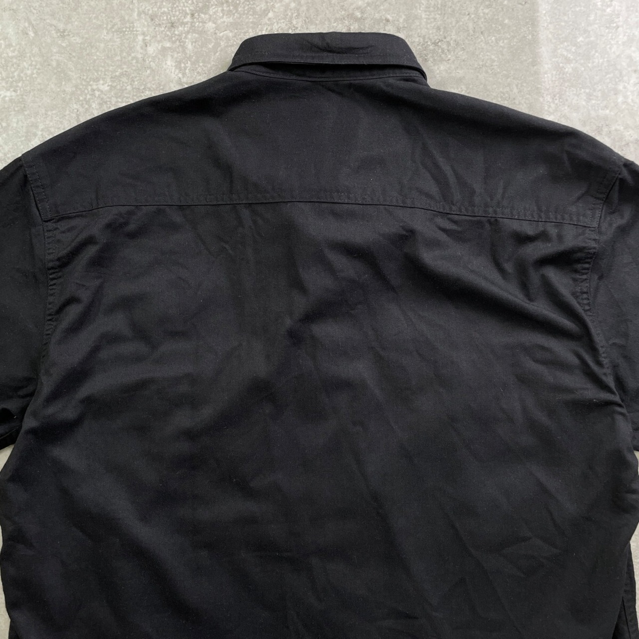 ■Dickies ディッキーズ TEXACO テキサコ 企業ロゴワッペン 半袖 ワークシャツ メンズM 古着 アドバタイジング 黒【半袖シャツ】/ブラック
