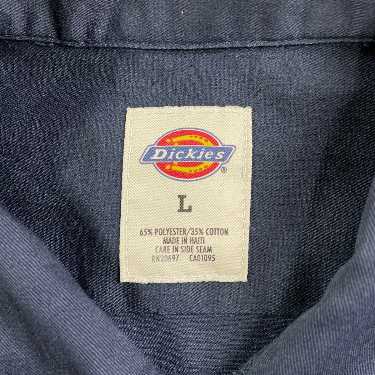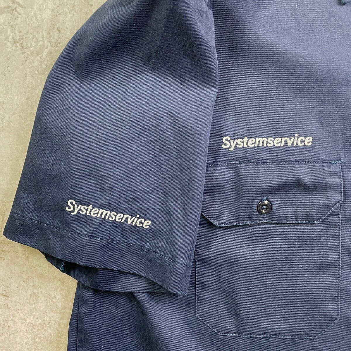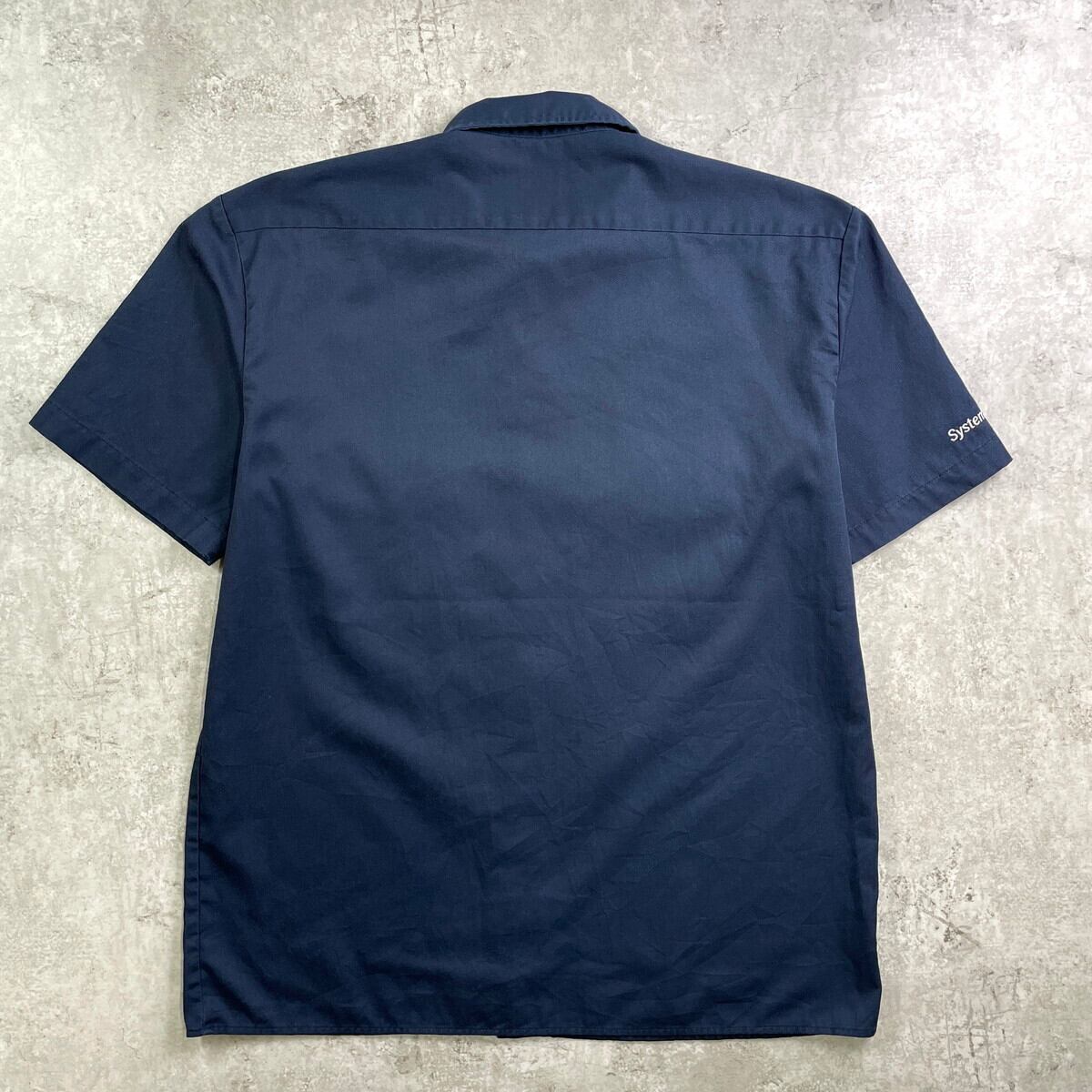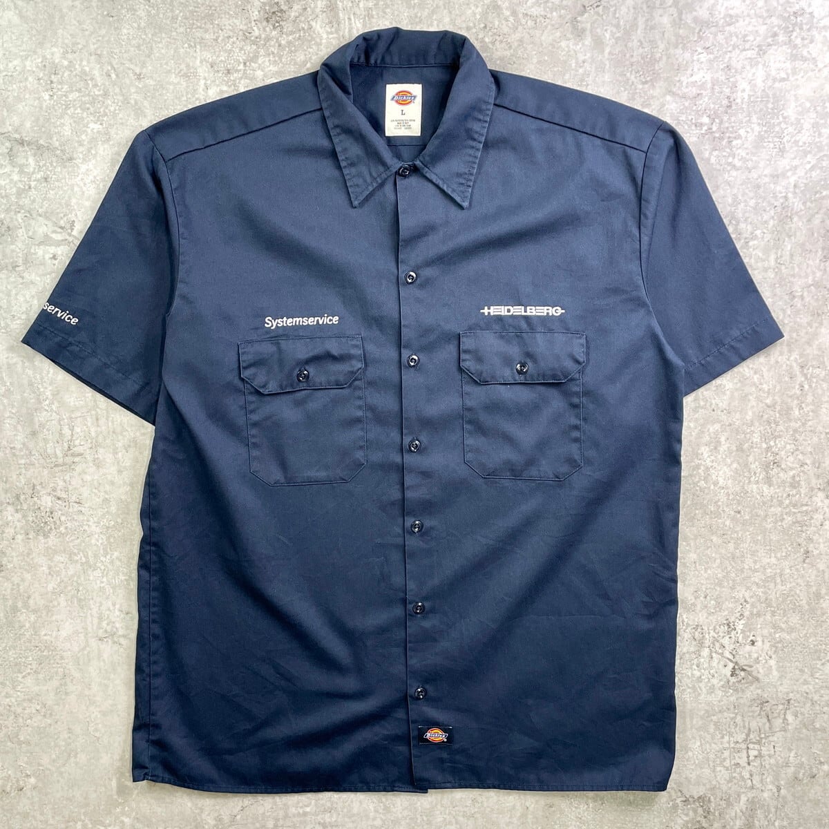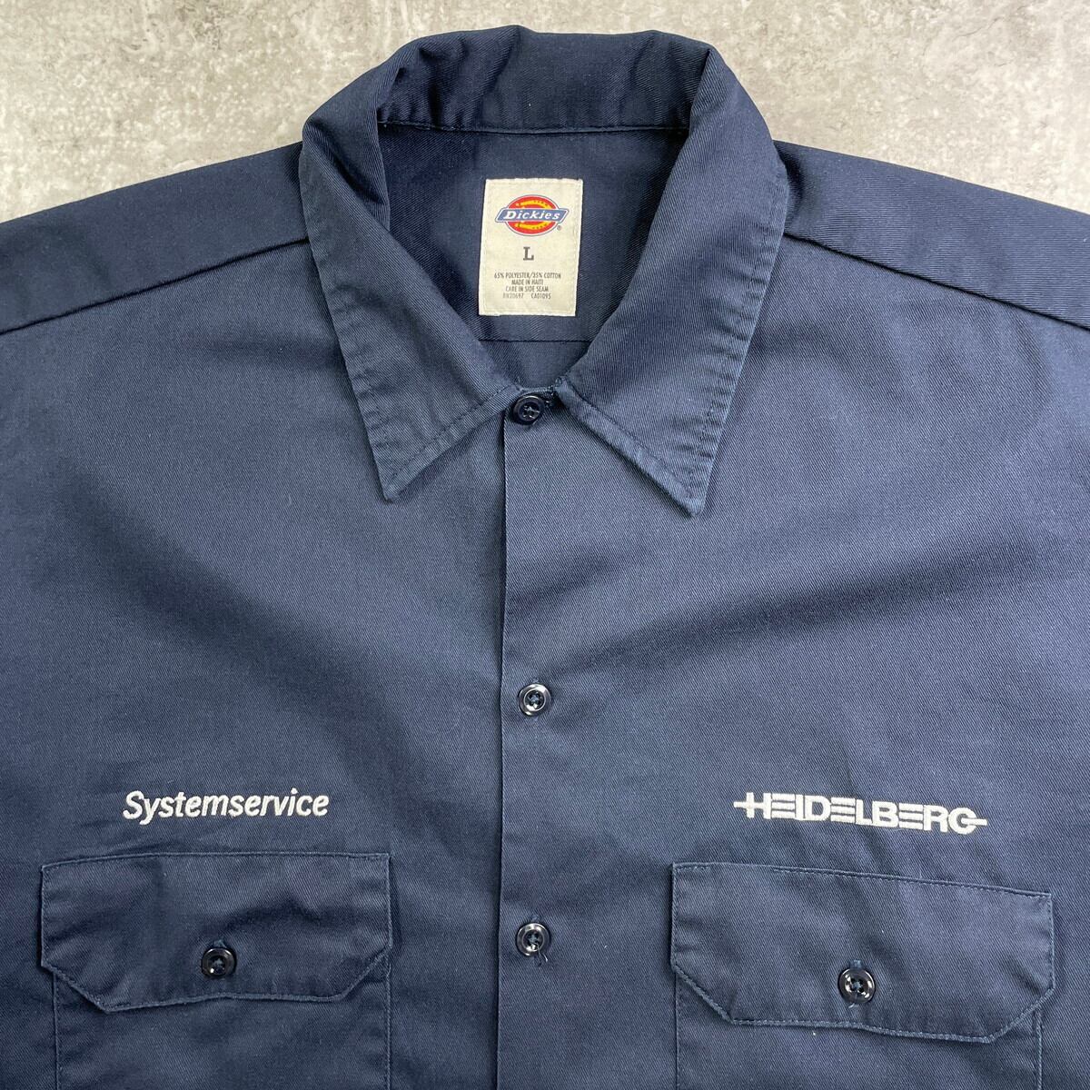 Dickies ディッキーズ HEIDELBERG 企業ロゴ刺繍 半袖 ワークシャツ メンズL 古着 アドバタイジング ハイデルベルク 紺色【半袖シャツ】/ネイビー【SS50】