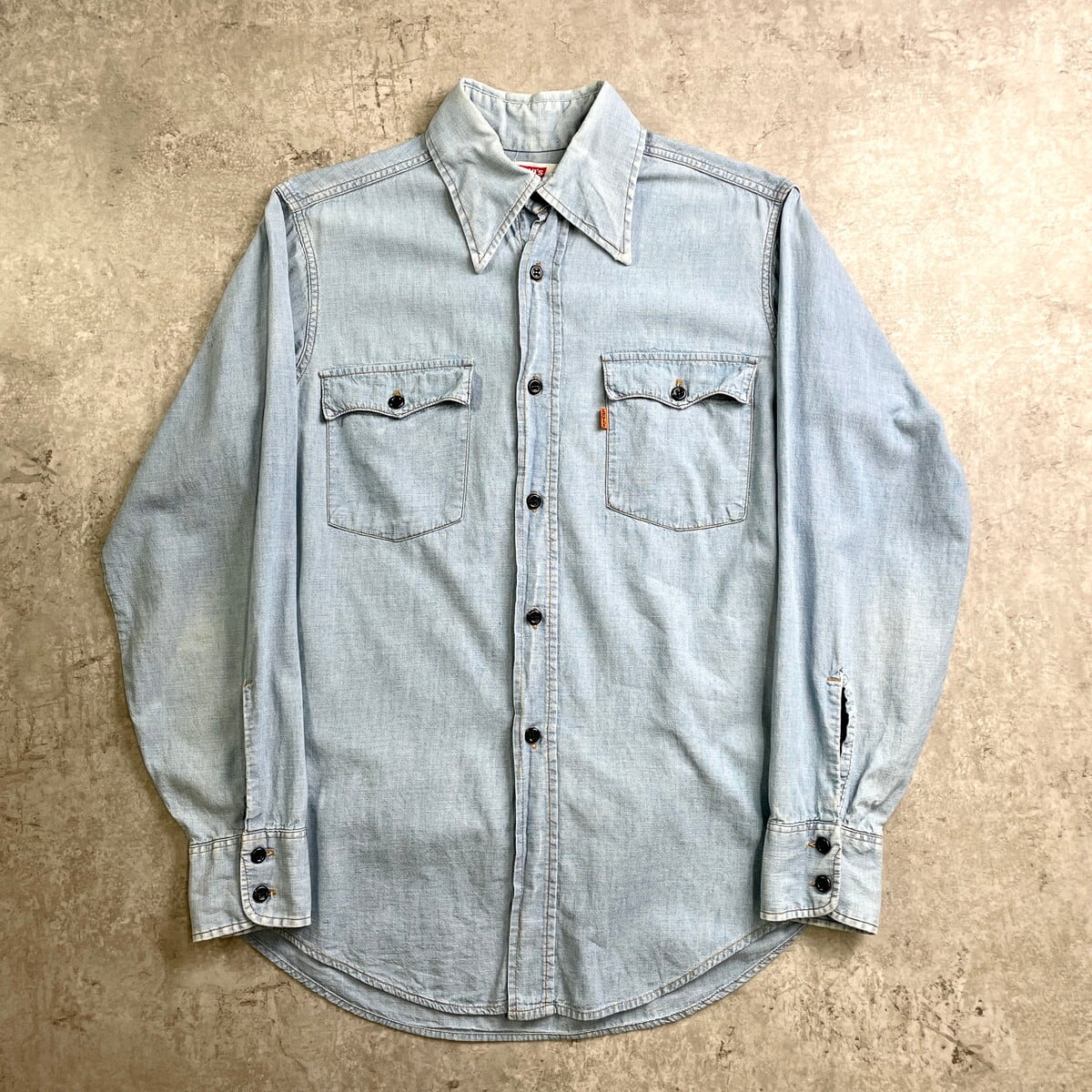 70年代 USA製 Levi's リーバイス オレンジタブ シャンブレーシャツ メンズM 古着 70s VINTAGE ヴィンテージ デニムシャツ【長袖シャツ】ブルー