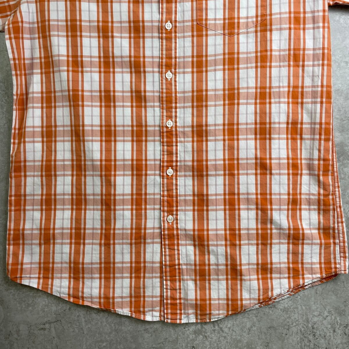 ■L.L.Bean エルエルビーン 半袖チェックシャツ メンズM 古着 オレンジ ホワイト 白【半袖シャツ】/マルチカラー