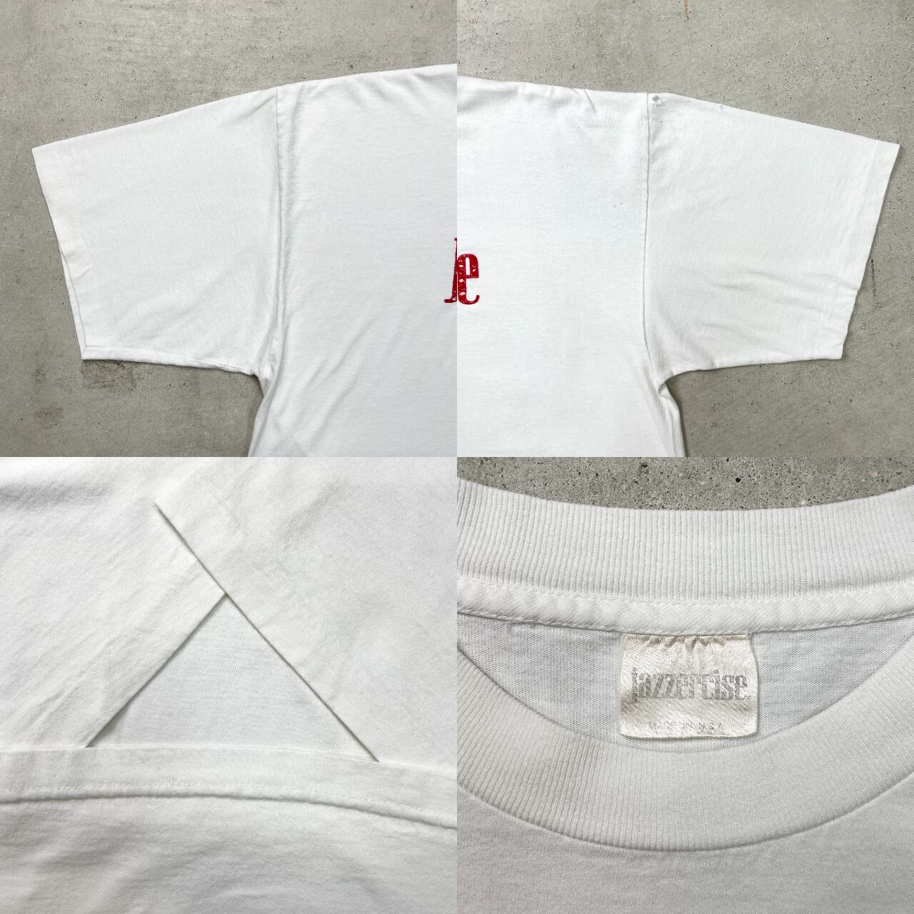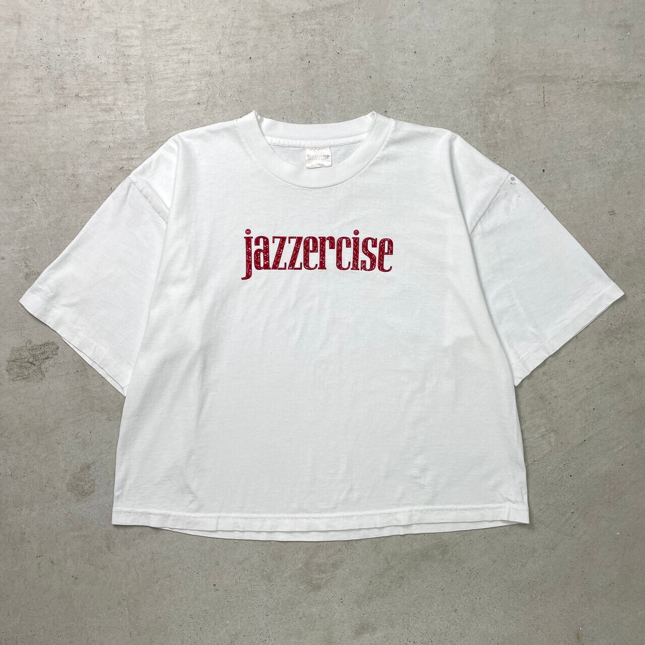 90年代 USA製 jezzercise 企業ロゴ アドバタイジングTシャツ ショート丈 エナメルプリント メンズL相当 レディースXL相当 古着 90s VINTAGE ヴィンテージ 袖シングルステッチ 白【Tシャツ】/ホワイト【SS50】