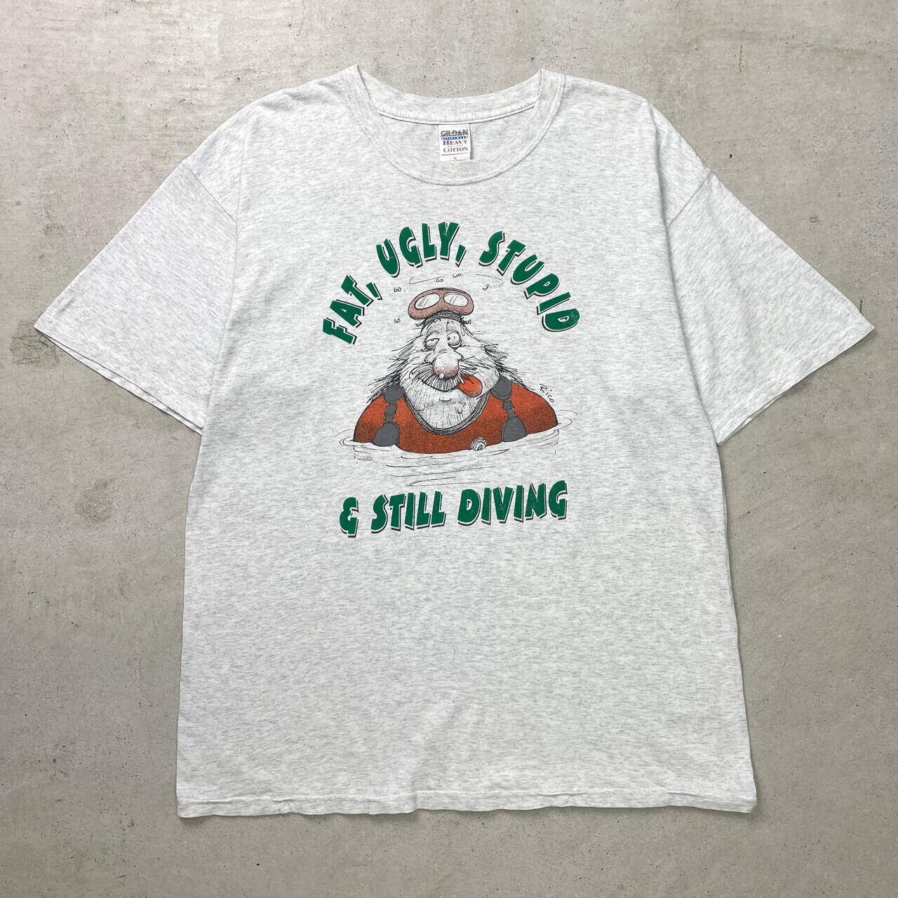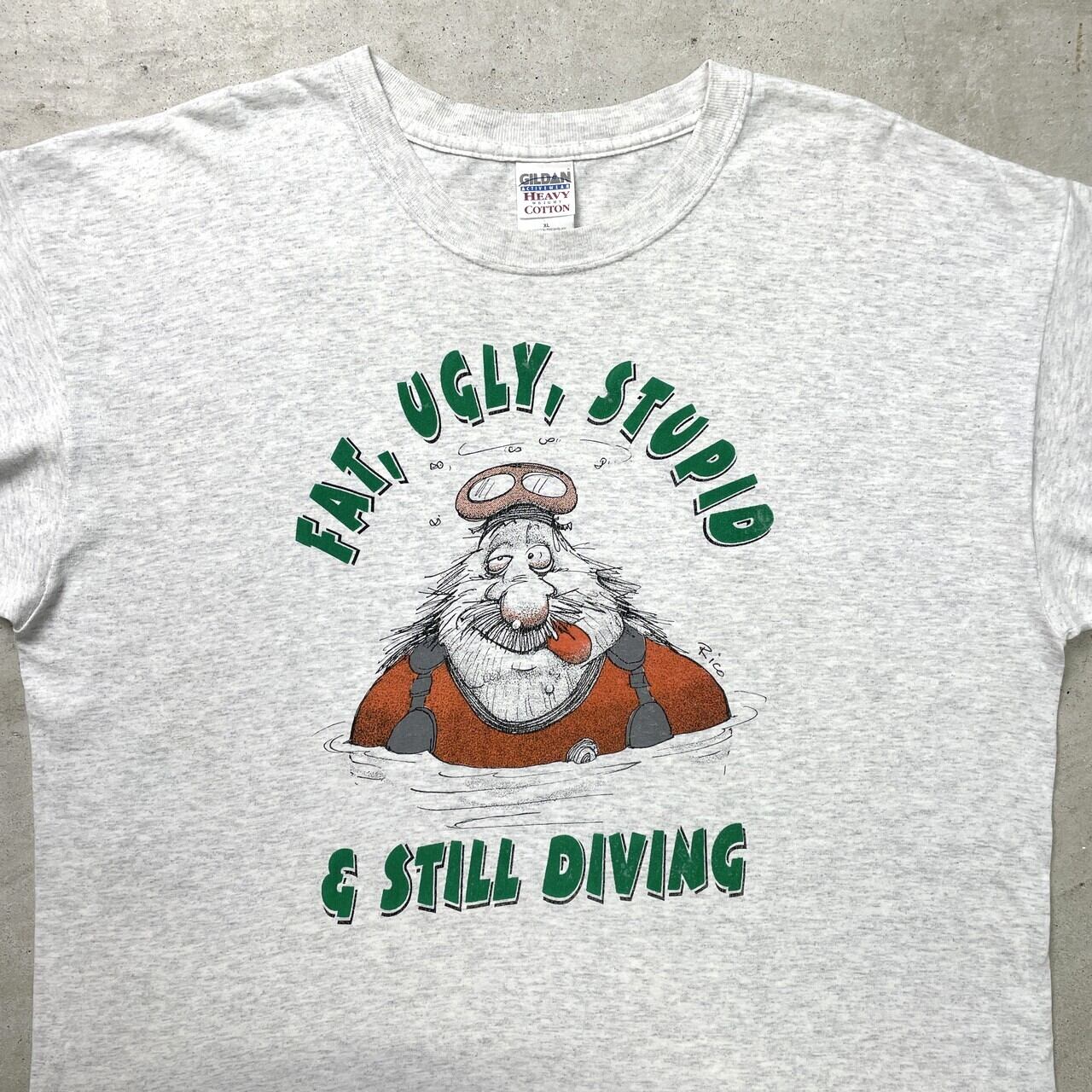 00年代 FAT,UGLY,STUPID & STILL DIVING ジョークプリントTシャツ メンズXL 古着 00s Y2K ライトグレー 灰色 【Tシャツ】/グレー【SS50】