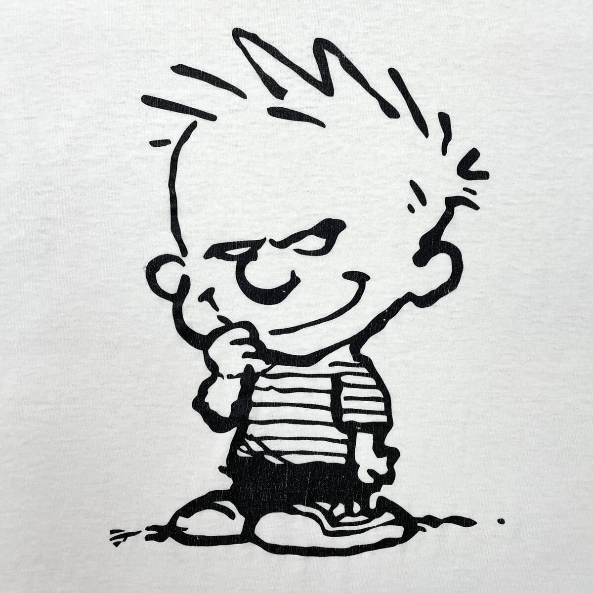 90年代 Calvin and Hobbes カルビンとホッブス キャラクタープリントTシャツ メンズXL 古着 90s ヴィンテージ VINTAGE シングルステッチ 白【Tシャツ】/ホワイト