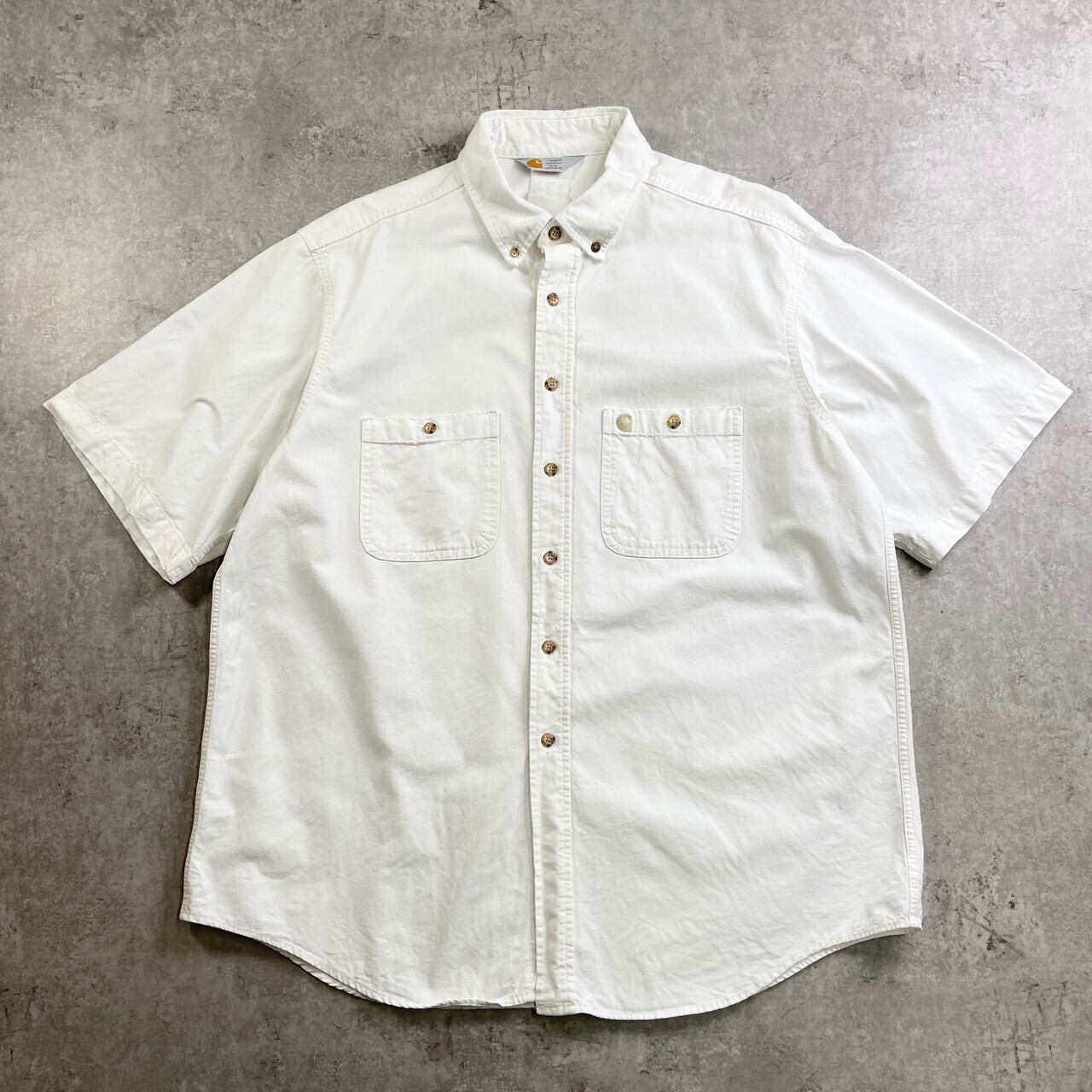 Carhartt カーハート 半袖ワークシャツ メンズ2XL相当 古着 ボタンダウン B.D 白 ビッグサイズ 大きいサイズ【半袖シャツ】/ホワイト