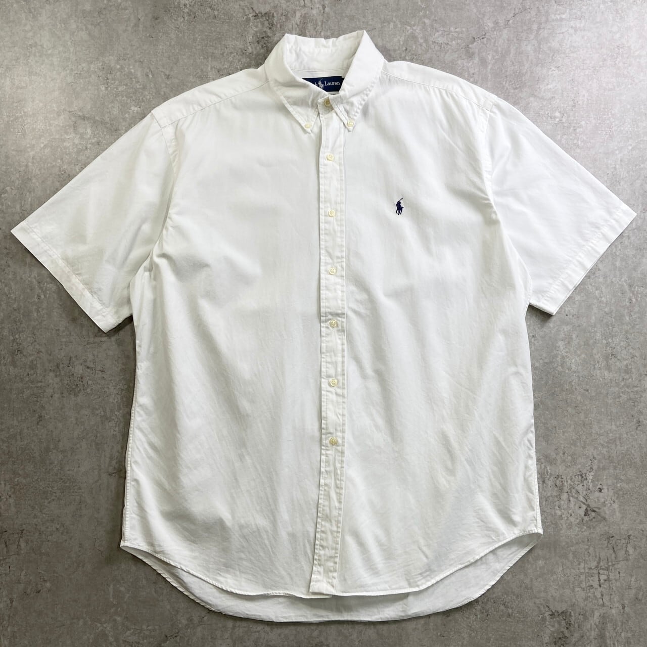 90年代 Ralph Lauren ラルフローレン BLAKE 半袖シャツ メンズ2XL相当 古着 90s ヴィンテージ VINTAGE ボタンダウンシャツ B.D 白 ビッグサイズ 大きいサイズ【半袖シャツ】/ホワイト
