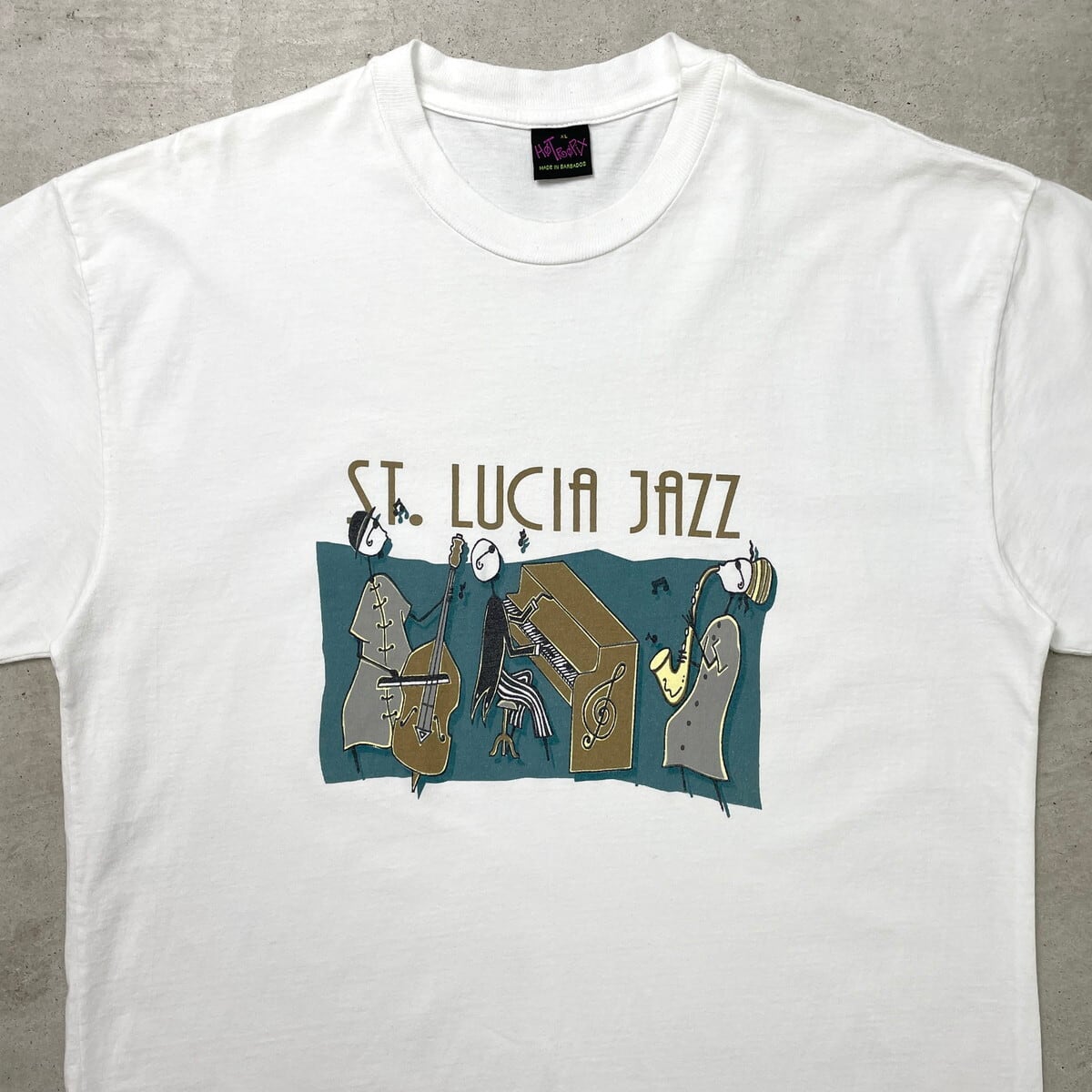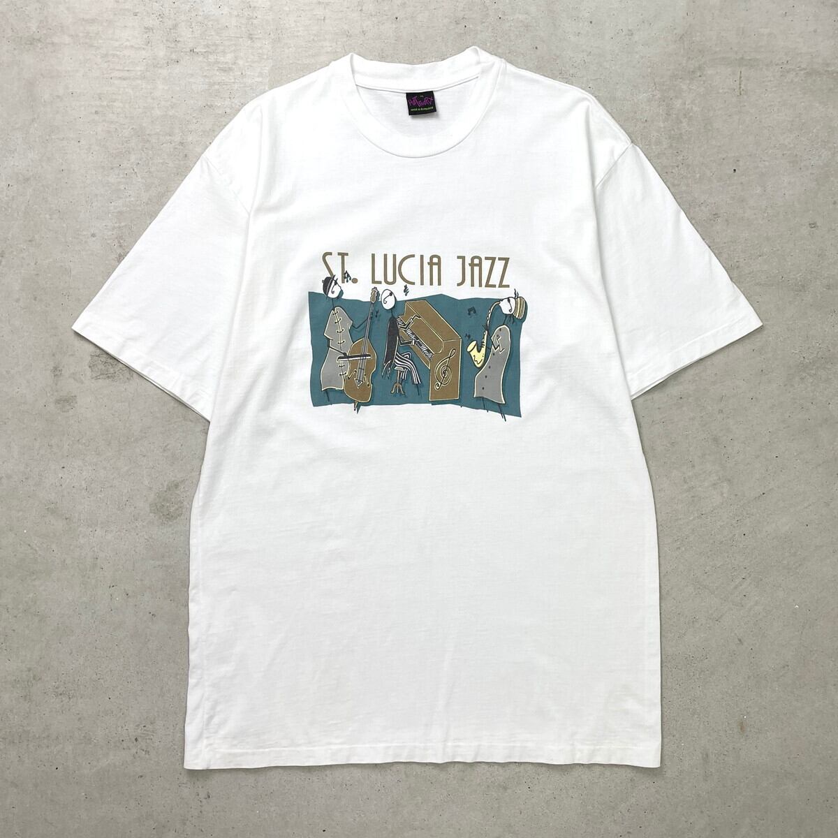 90年代 ST. LUCIA JAZZ ジャズフェスティバル アートプリントTシャツ メンズXL 古着 90s VINTAGE ヴィンテージ シングルステッチ バンド 白【Tシャツ】/ホワイト【SS50】