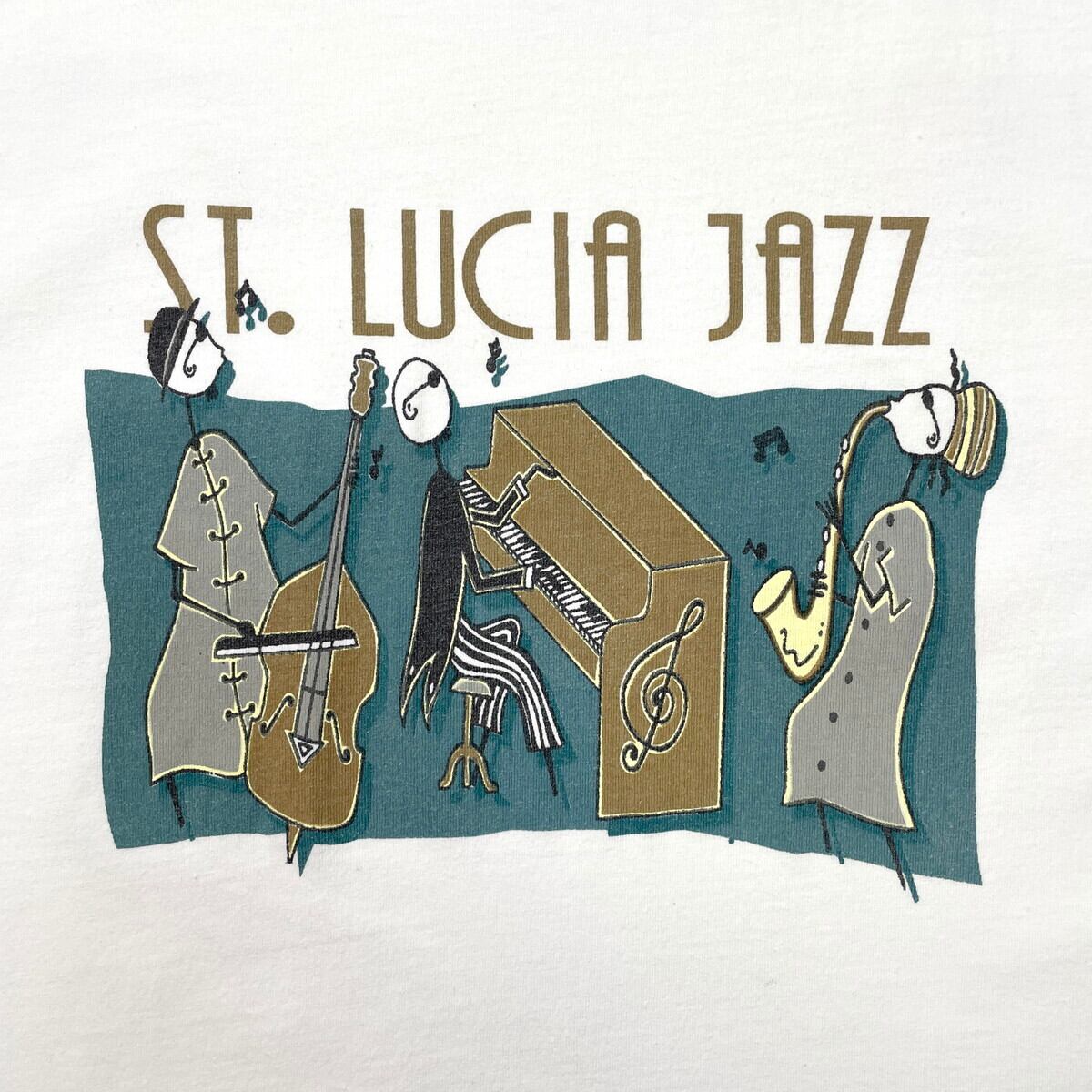■90年代 ST. LUCIA JAZZ ジャズフェスティバル アートプリントTシャツ メンズXL 古着 90s VINTAGE ヴィンテージ シングルステッチ バンド 白【Tシャツ】/ホワイト