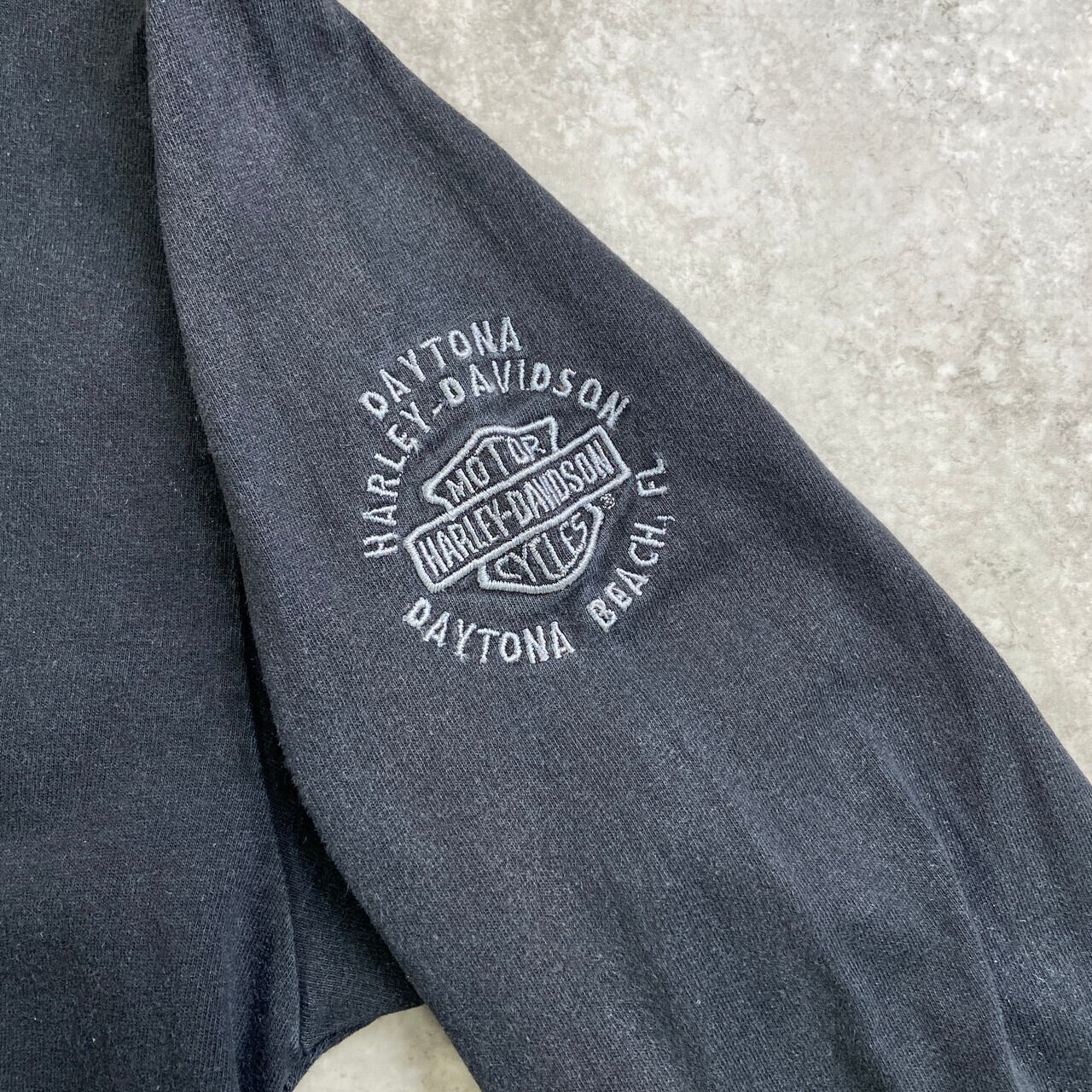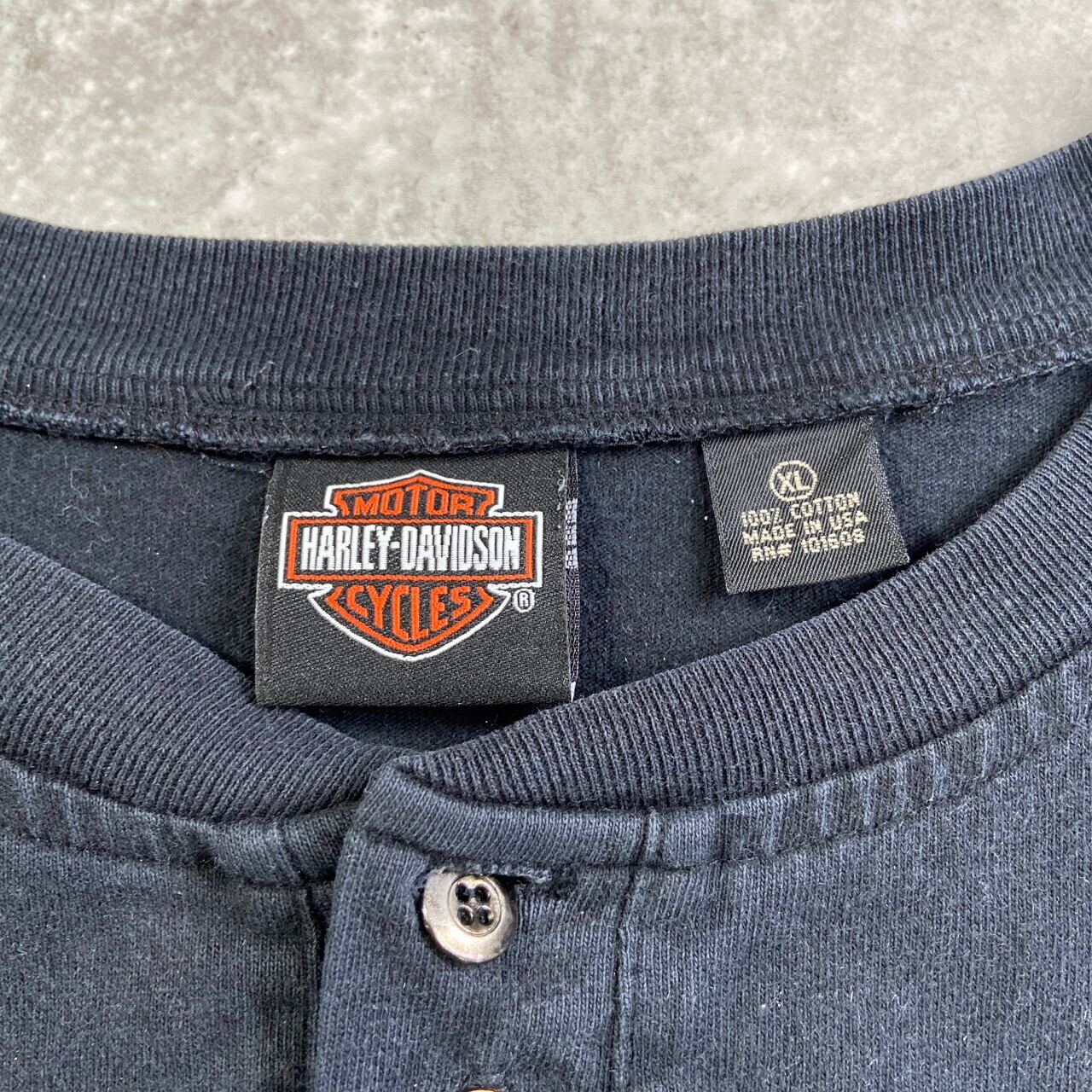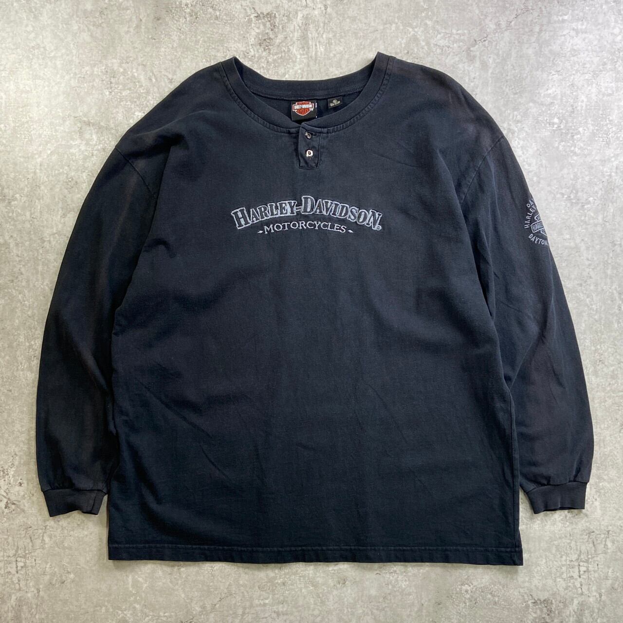90年代 USA製 Harley-Davidson ハーレーダビッドソン ロングTシャツ ロゴ刺繍 ヘンリーネック メンズXL 古着 90s ヴィンテージ VINTAGE バイク モーターサイクル ロンT 長袖 黒【ロングTシャツ】/ブラック