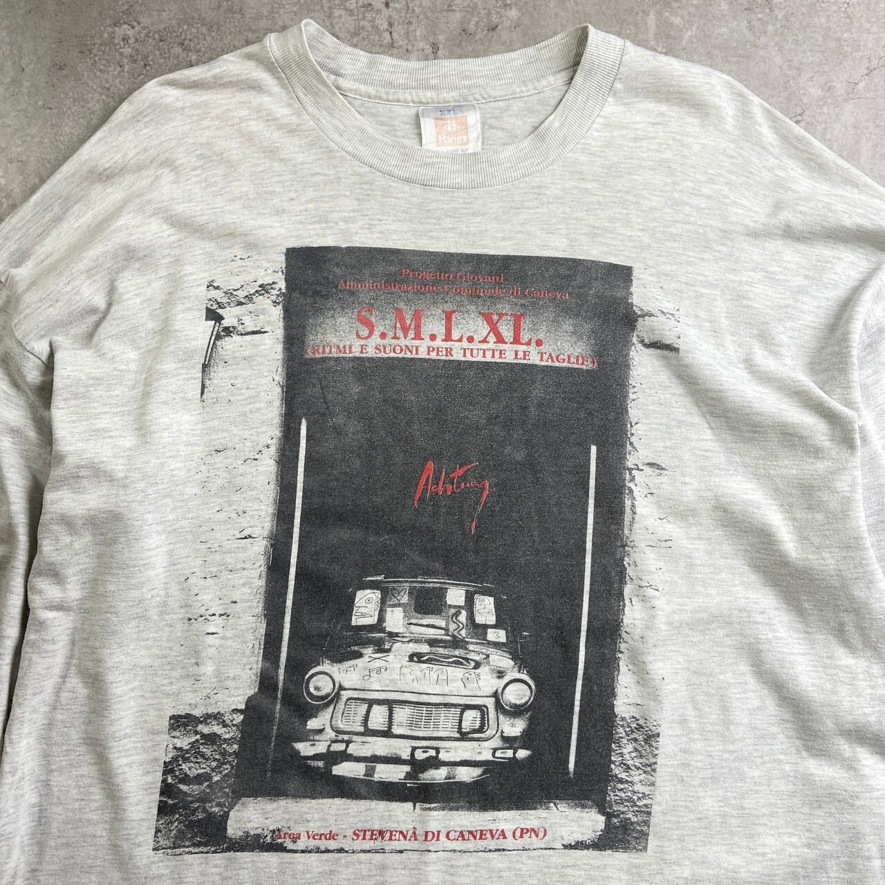 90年代 Achtung プリントロングTシャツ ロンT メンズ2XL 古着 90s ヴィンテージ VINTAGE ライトグレー 灰色 ビッグサイズ 大きいサイズ【ロングTシャツ】/グレー