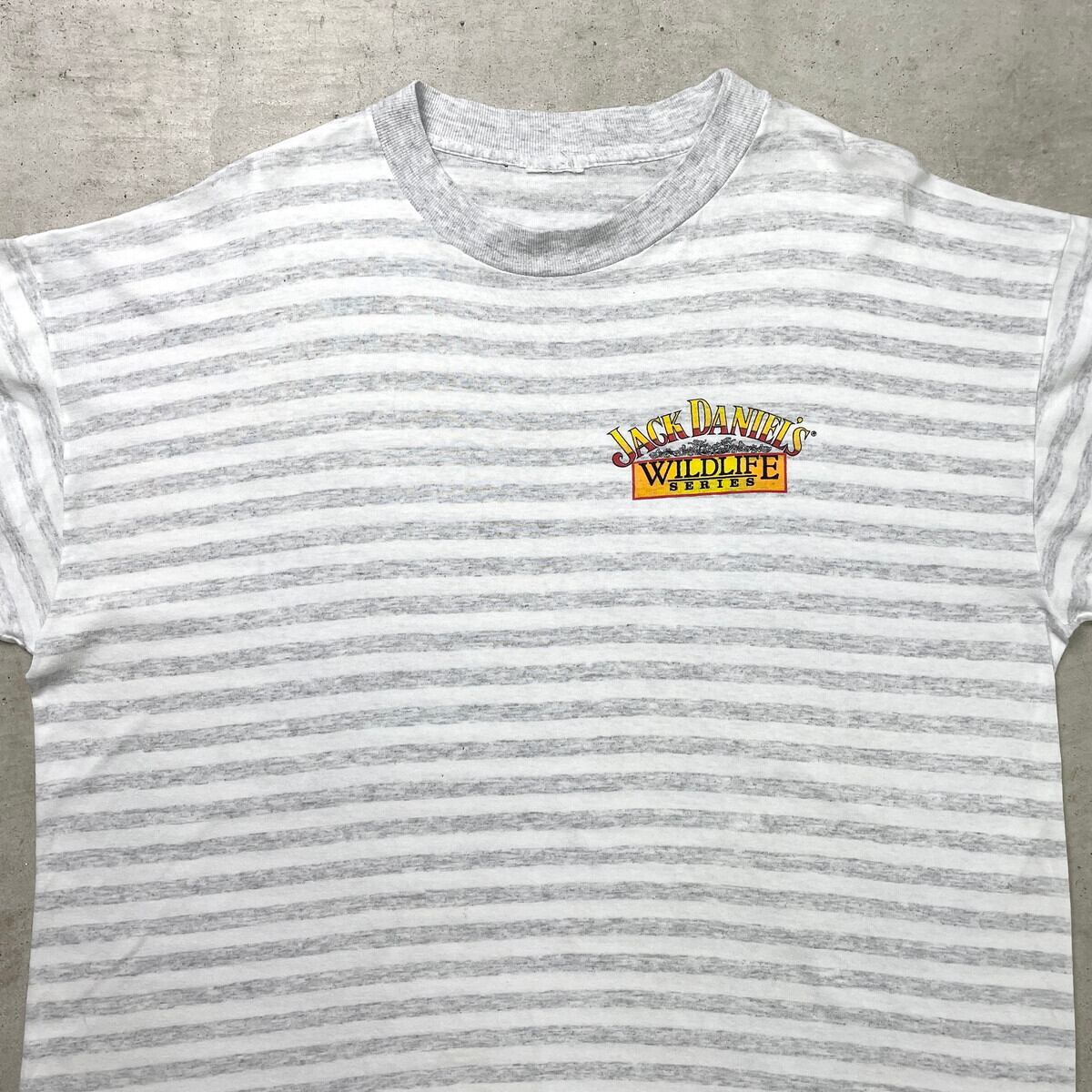 ■90年代 JACK DANIEL’S ジャックダニエル ボーダー 企業ロゴプリントTシャツ メンズXL相当 古着 1991 90s ヴィンテージ VINTAGE シングルステッチ アドバタイジング ウイスキー ピューマ アニマル WILDLIFE SERIES ホワイト ライトグレー 白 灰色【Tシャツ】/マルチカラー