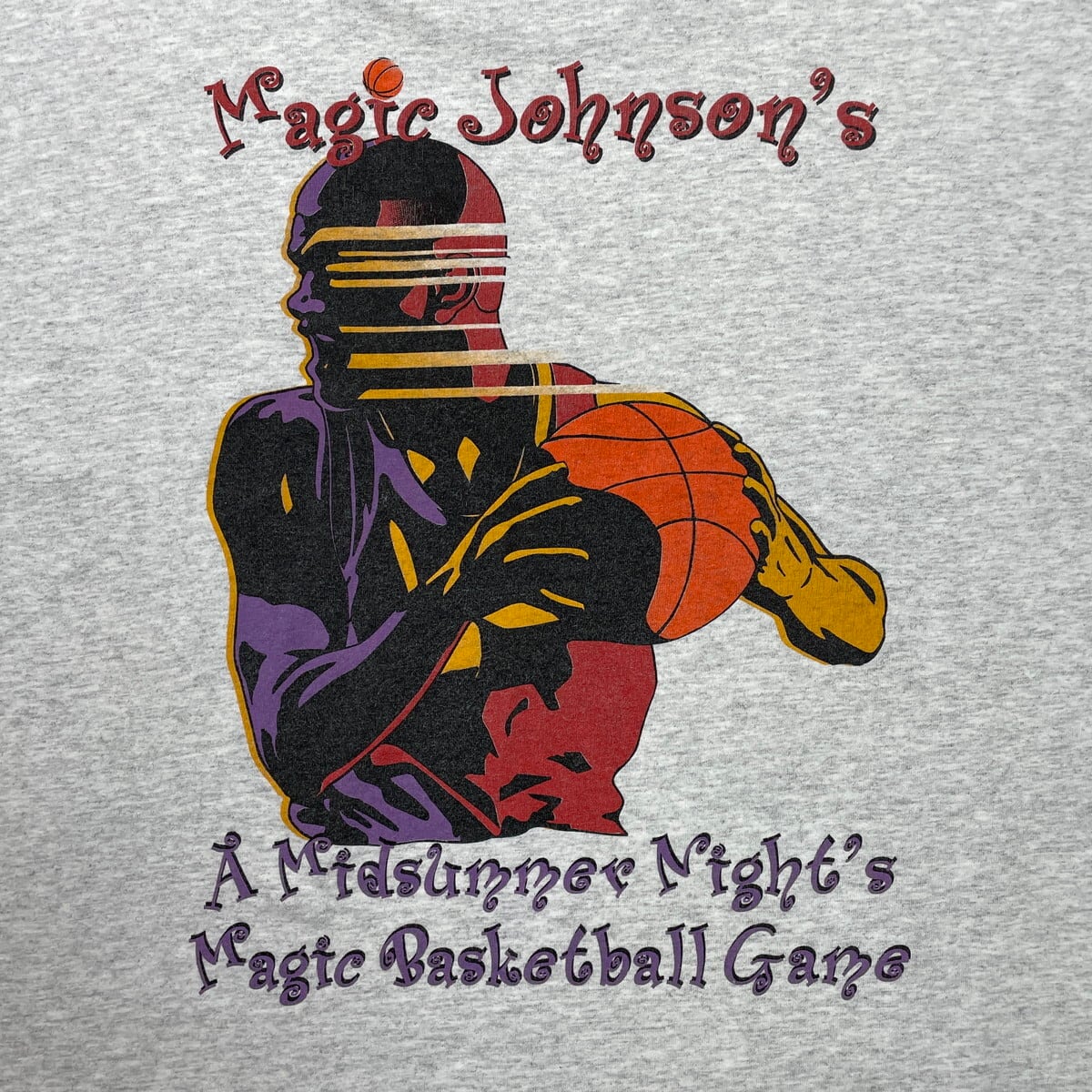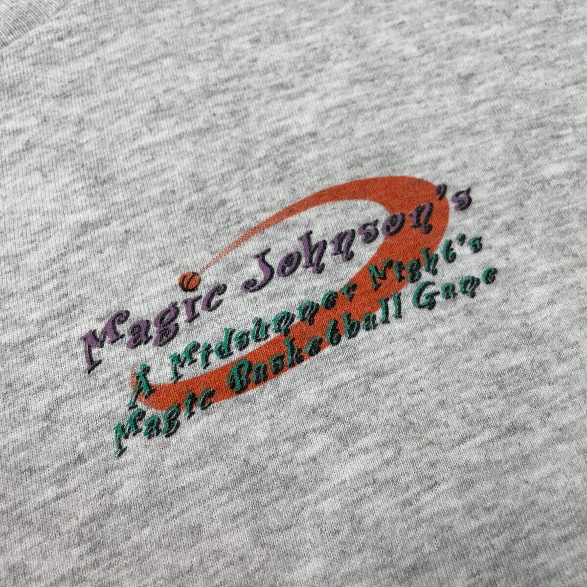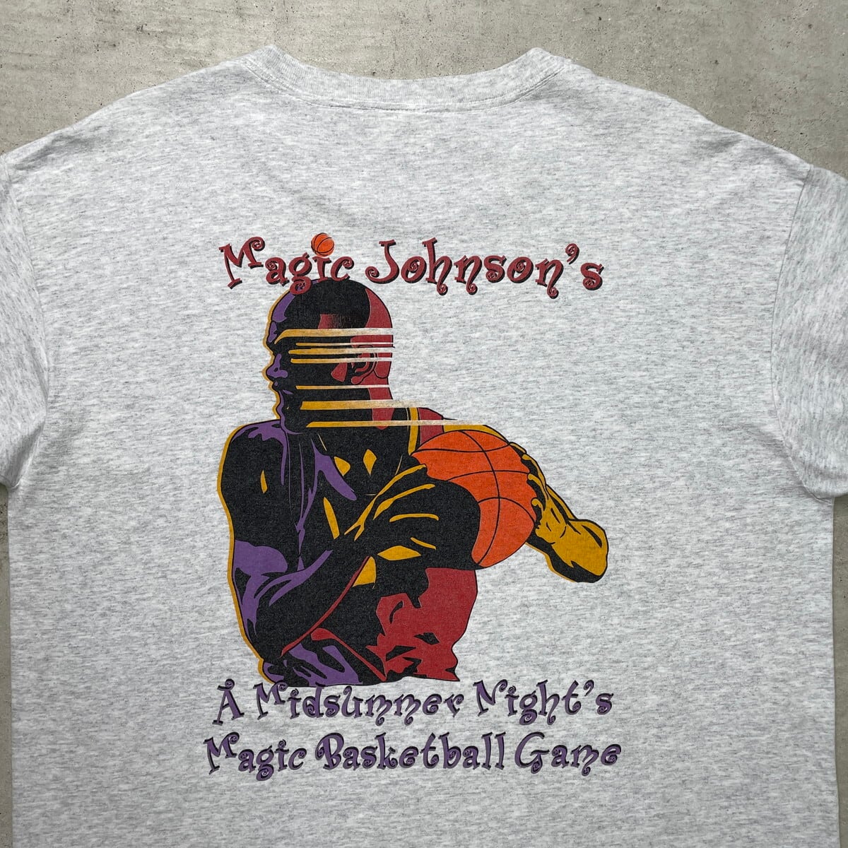 90年代 USA製 Magic Johnson マジックジョンソン NBA プリントTシャツ メンズXL 古着 90s ヴィンテージ VINTAGE バスケ チーム ライトグレー 灰色【Tシャツ】/グレー【SS50】