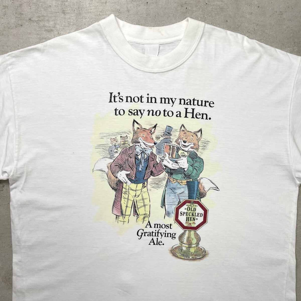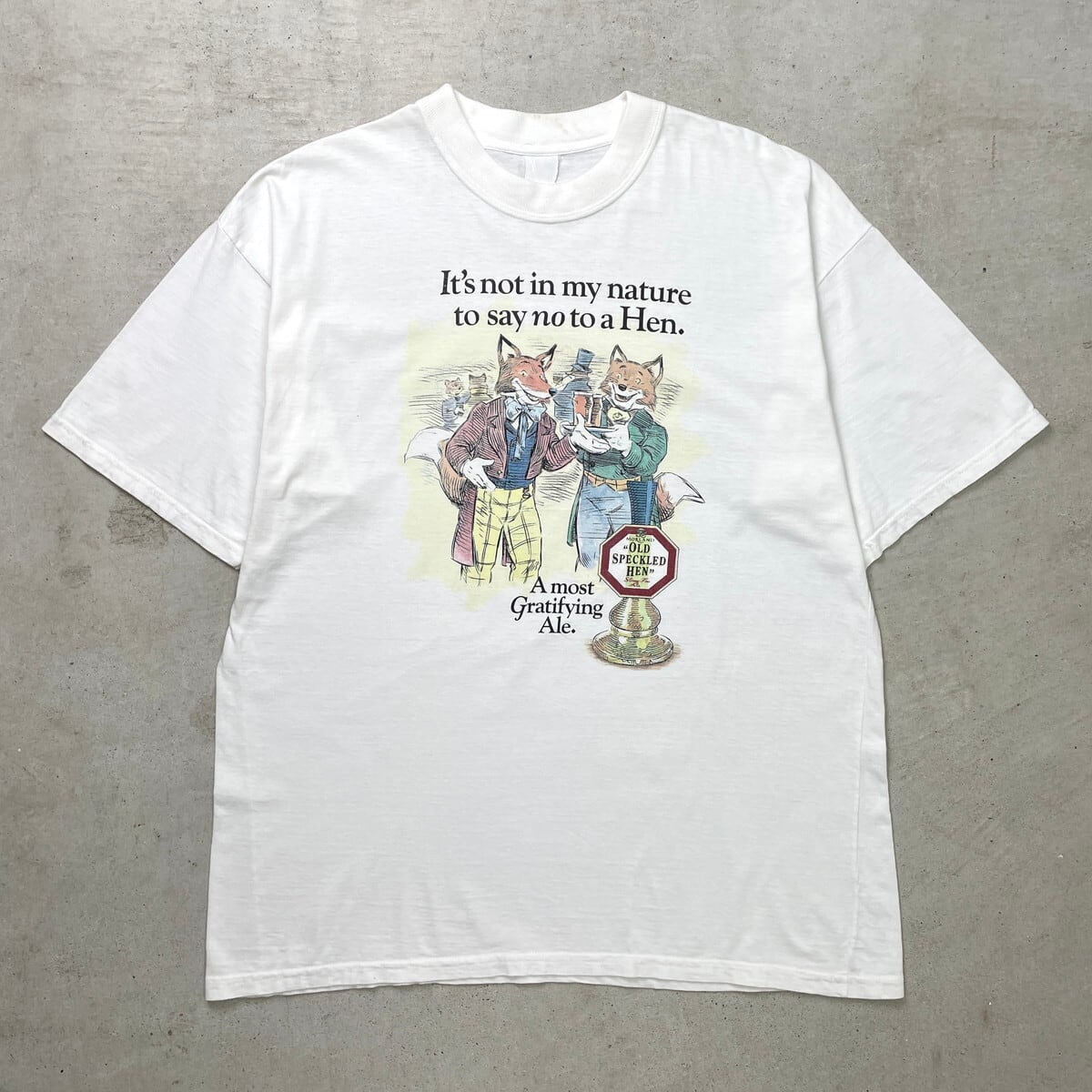 ■90年代 OLD SPECKLED HEN ビール 企業ロゴプリントTシャツ メンズ2XL相当 古着 90s ヴィンテージ VINTAGE アドバタイジング オールドスペックルドヘン ビッグサイズ 大きいサイズ キツネ フォックス アニマル 白【Tシャツ】/ホワイト