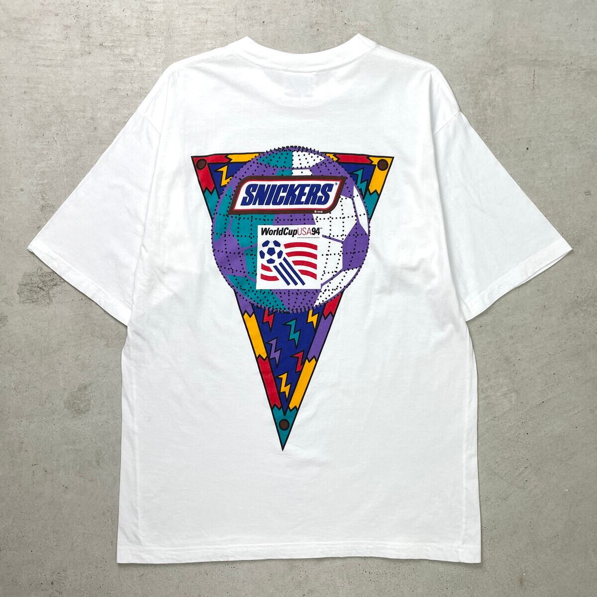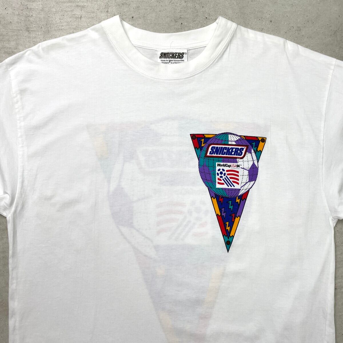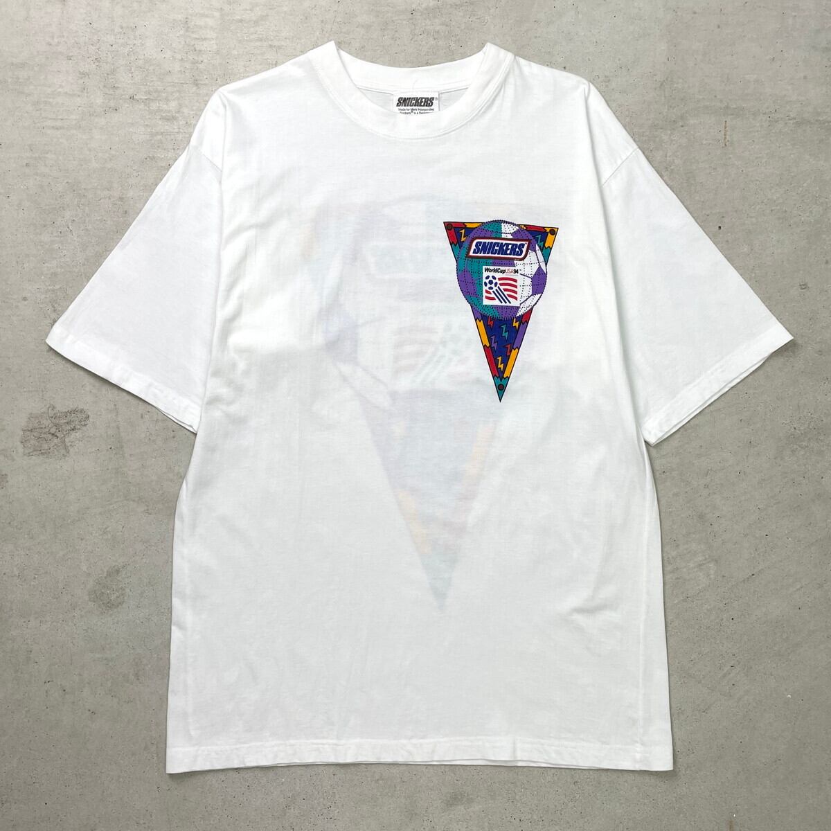 ■90年代 WorldCupUSA94 SNICKERS スニッカーズ 企業ロゴ アートプリントTシャツ メンズXL 古着 90s ヴィンテージ VINTAGE ワールドカップ94 サッカー 白【Tシャツ】/ホワイト