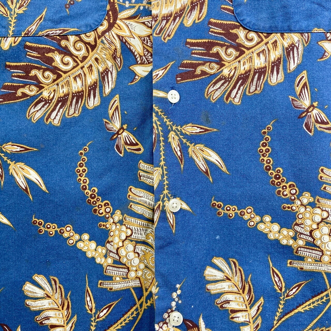 80年代 BANANA REPUBLIC バナナリパブリック 半袖総柄シャツ メンズXL相当 古着 80s VINTAGE ヴィンテージ 青色【半袖シャツ】/ブルー