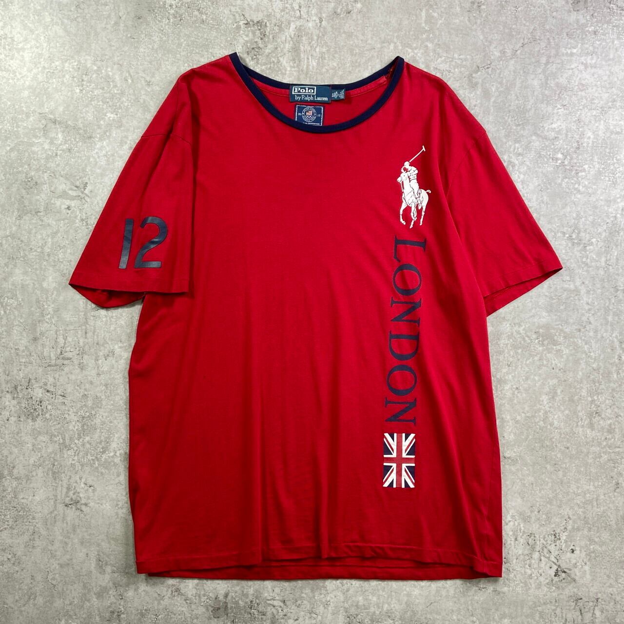 ■Polo by Ralph Lauren ポロバイラルフローレン ロゴプリントTシャツ 2012 LONDON ラバープリント ビッグポニー メンズXL 古着 赤【Tシャツ】/レッド