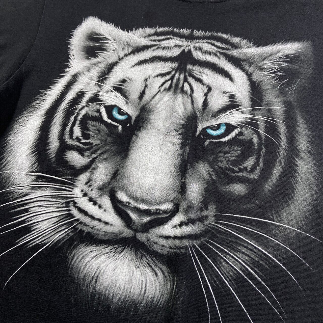 ■ホワイトタイガー アニマルプリントTシャツ メンズM 古着 動物 トラ 虎 黒【Tシャツ】/ブラック