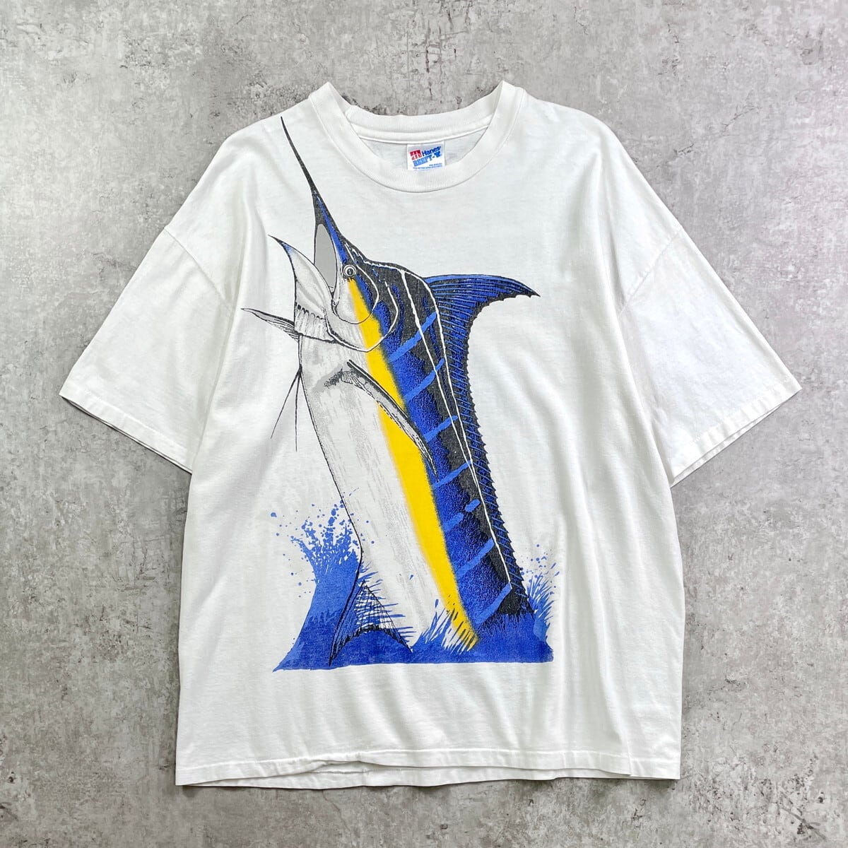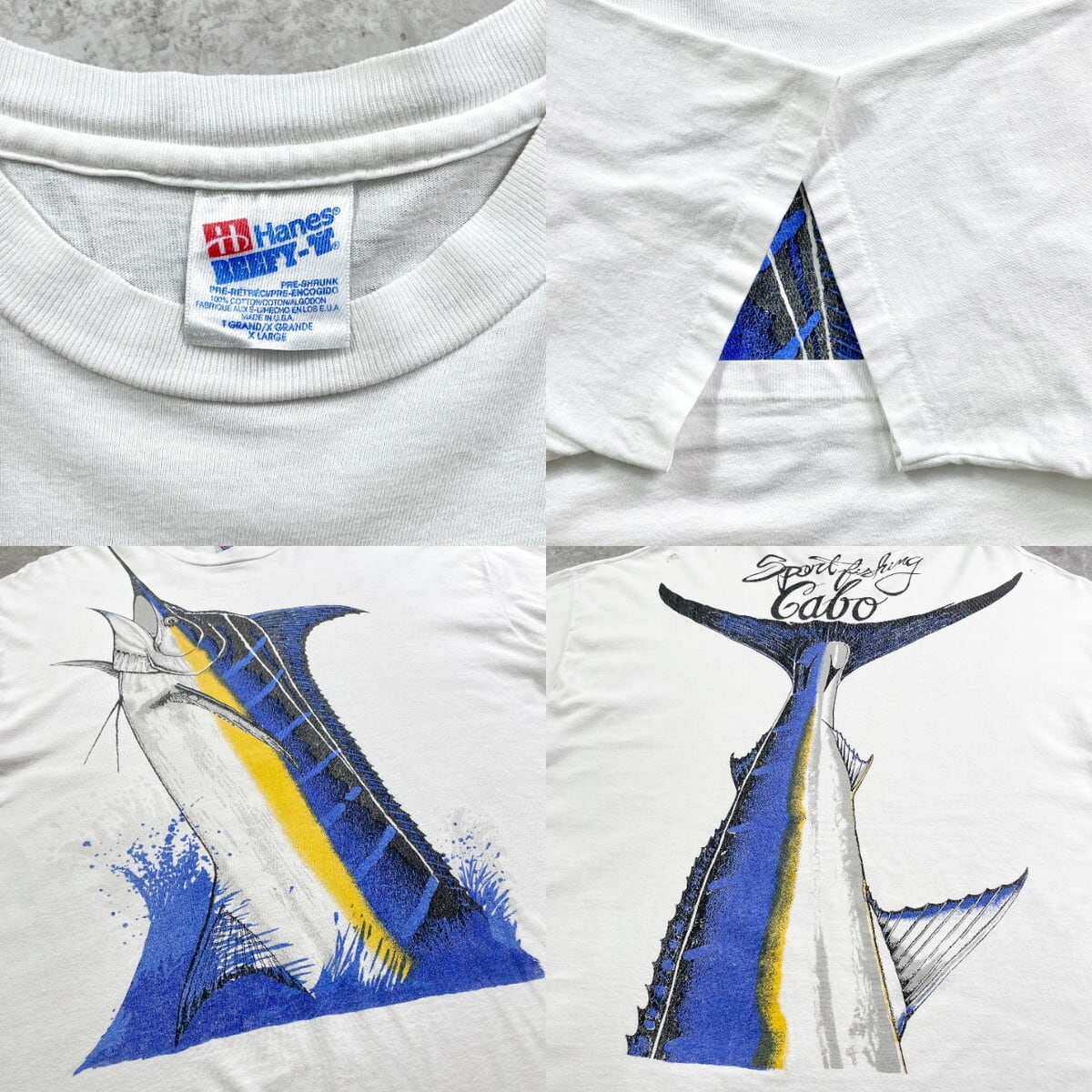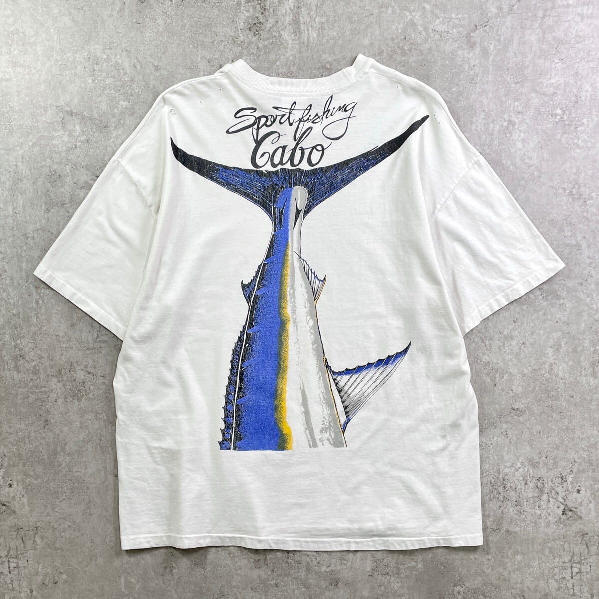 90年代 USA製 Sport fishing Cabo カジキ アニマルプリントTシャツ メンズXL 古着 90s VINTAGE ヴィンテージ シングルステッチ フィッシュ 魚 アート 両面プリント 白【Tシャツ】/ホワイト【SS50】