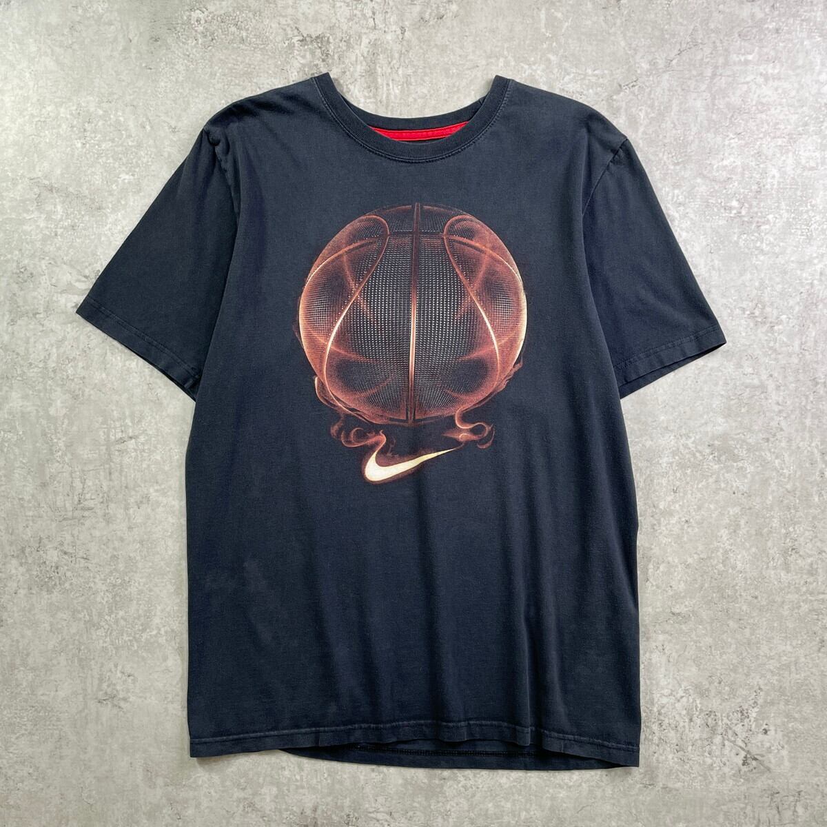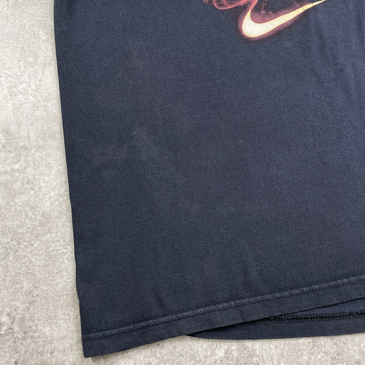 NIKE ナイキ スウォッシュロゴ グラフィックプリントTシャツ メンズM相当 古着 Y2K バスケ フェードブラック 黒【Tシャツ】/ブラック【SS50】