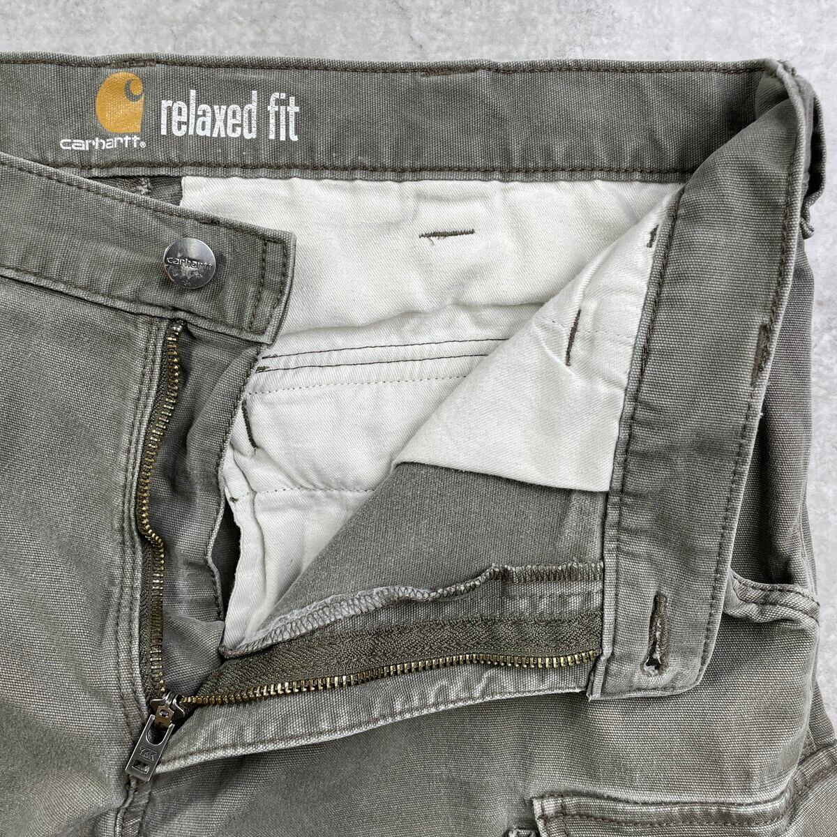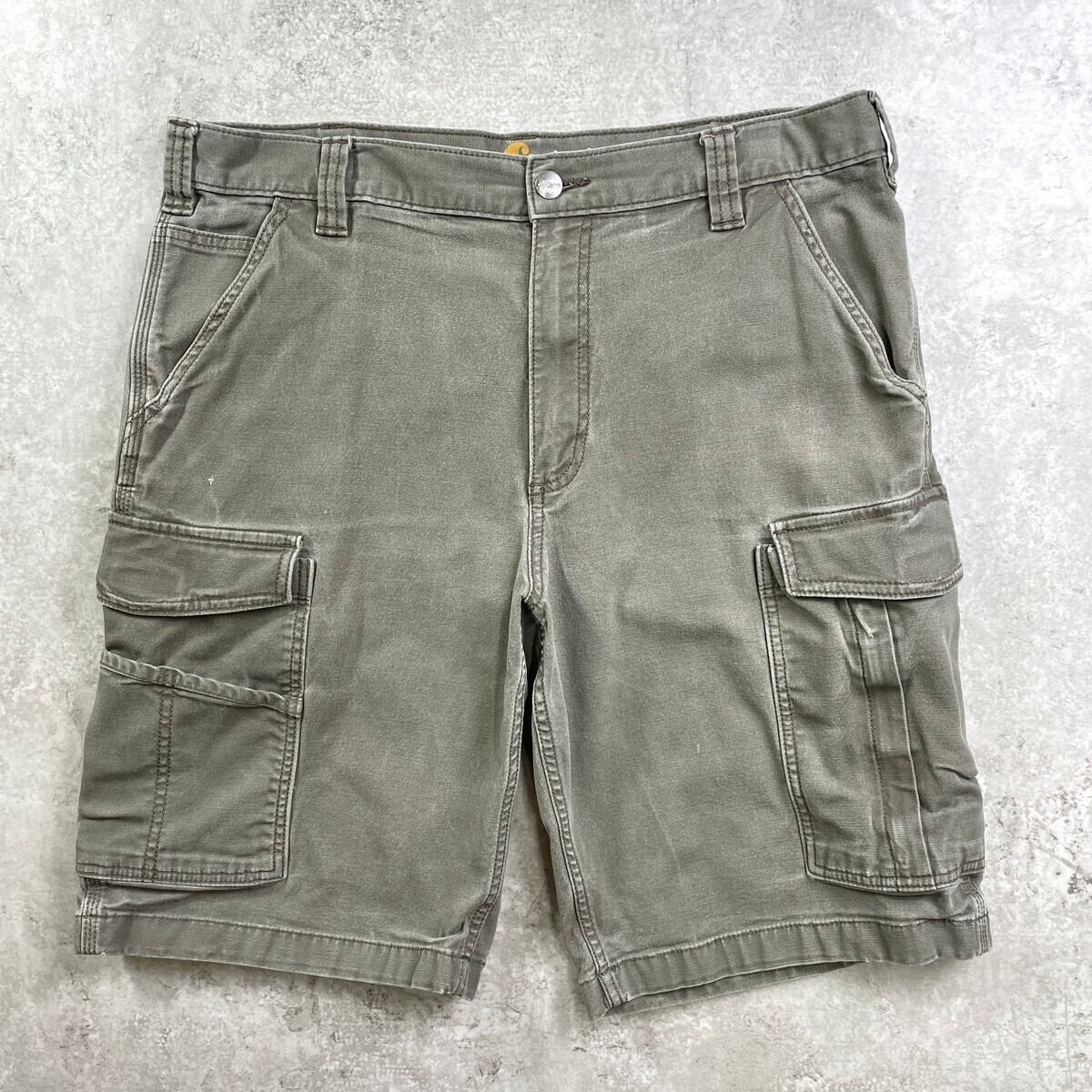 ■Carhartt カーハート ダックカーゴショーツ ハーフパンツ メンズW36 古着 RELAXED FIT ワークショーツ 【ショートパンツ】/カーキグリーン