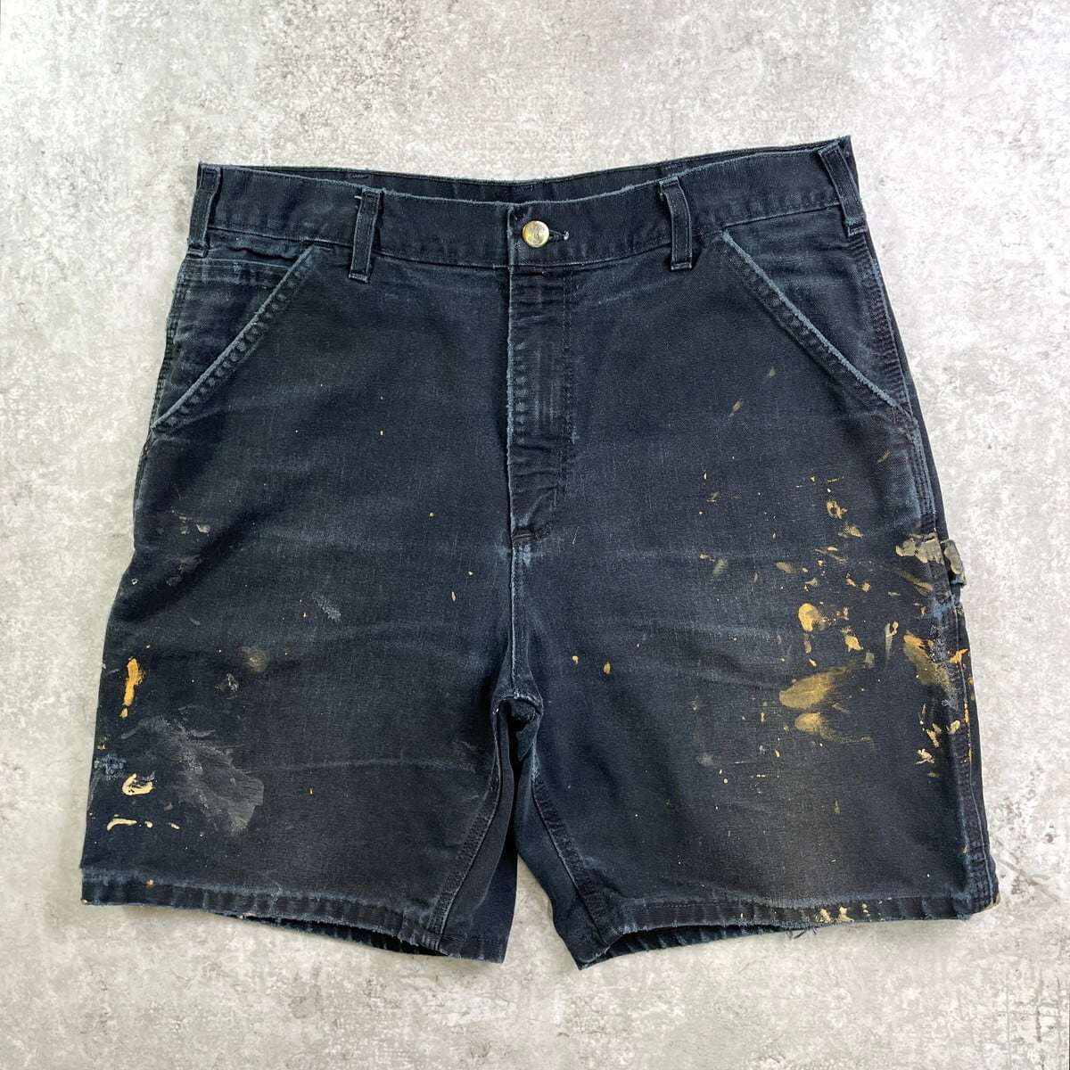 ■USA製 Carhartt カーハート ペンキ ダックワークショーツ ハーフパンツ メンズW34 古着 VINTAGE ヴィンテージ ペインターショーツ 黒色【ショートパンツ】/ブラック