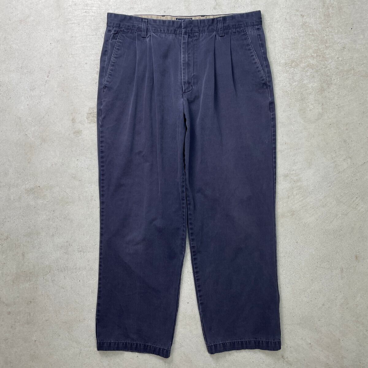 ■DOCKERS ドッカーズ ワイドチノパンツ 2タック メンズW36 古着 00s 紺色【チノパンツ,コットンパンツ】/ネイビー
