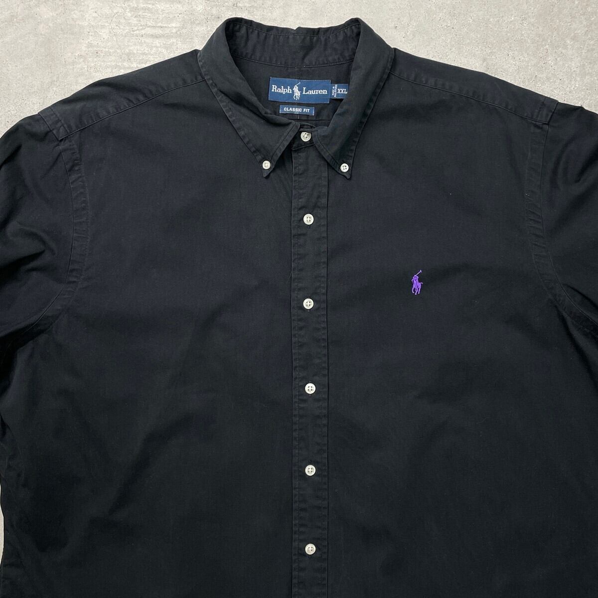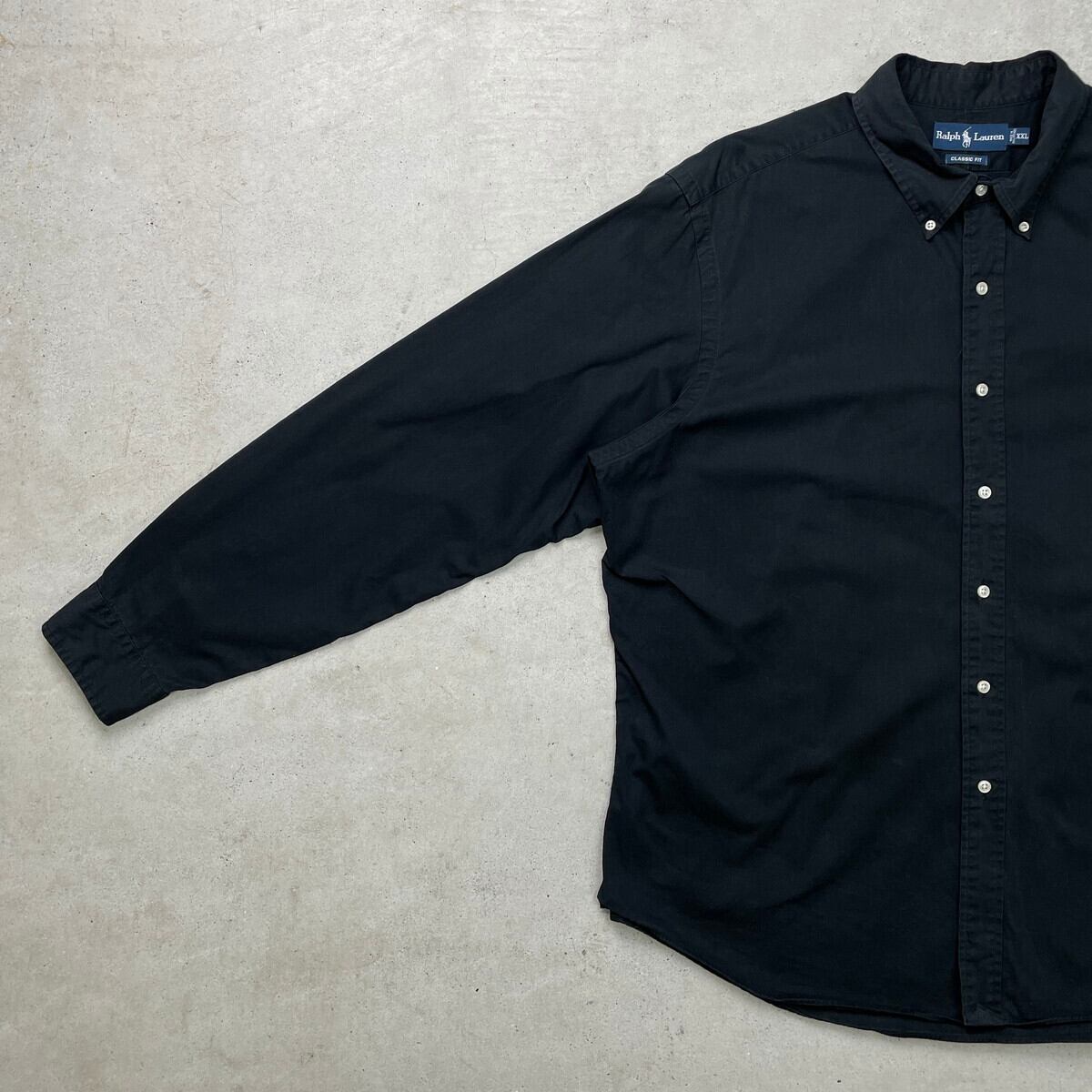 90年代 Ralph Lauren ラルフローレン CLASSIC FIT ボタンダウンシャツ メンズ2XL 古着 90s アメカジ VINTAGE ヴィンテージ B.D ビッグサイズ 大きいサイズ 黒【長袖シャツ】/ブラックSS30
