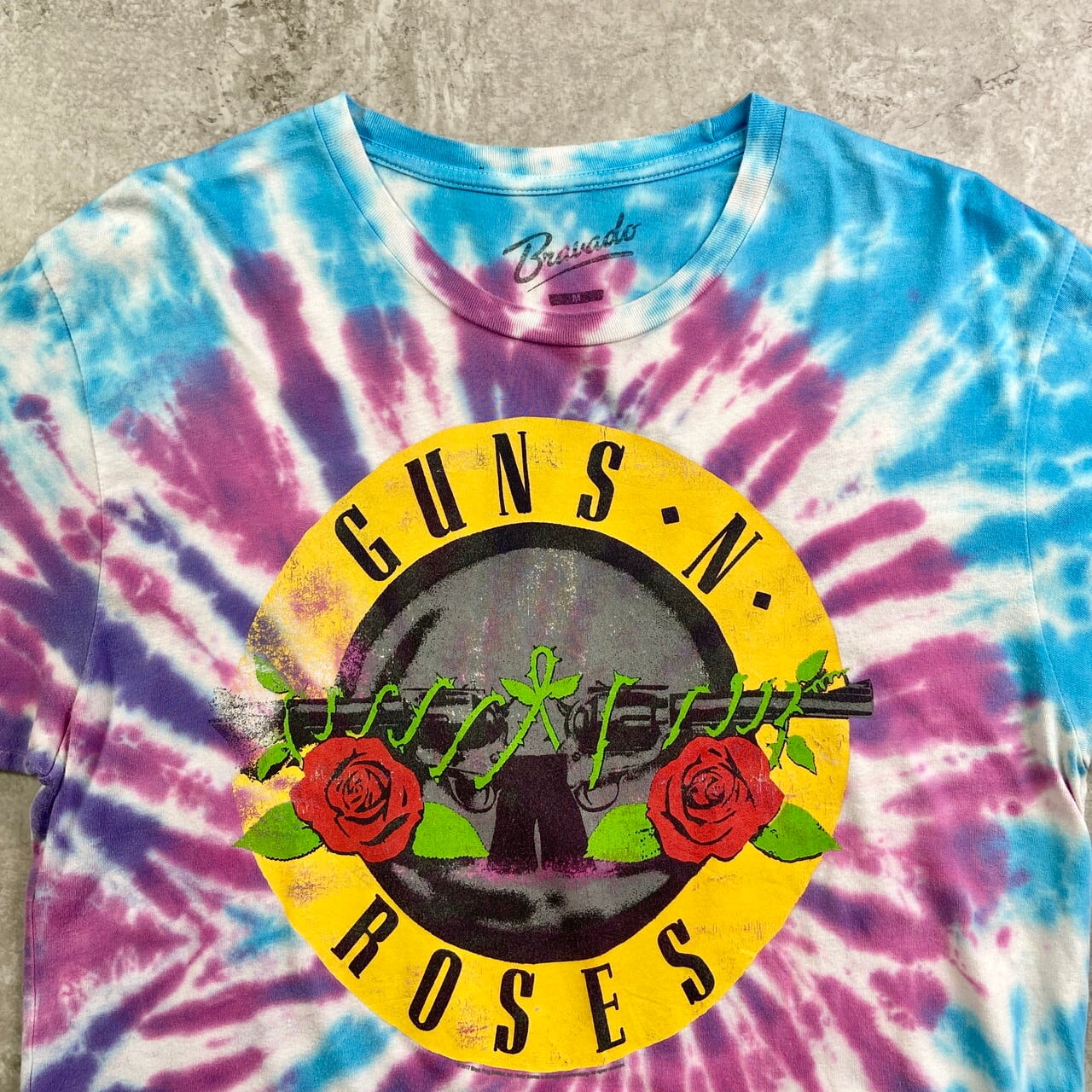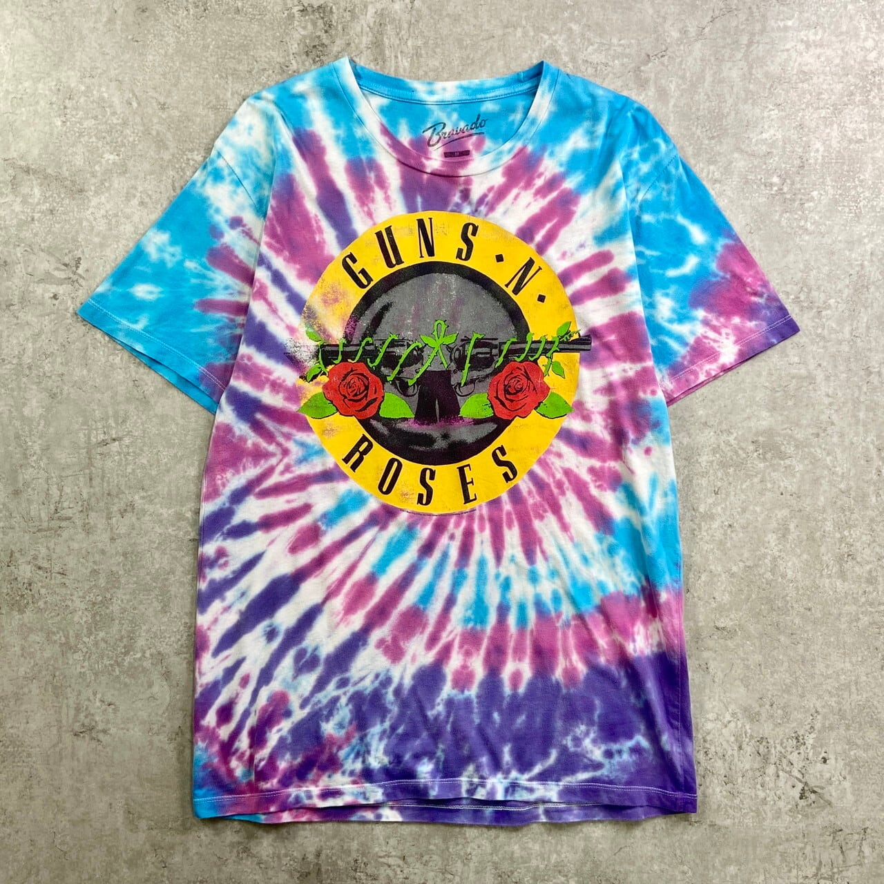 ■GUNS N' ROSES ガンズアンドローゼス バンドTシャツ タイダイ染め バンT メンズM 古着 リプリント ライトブルー パープル 水色 紫色【Tシャツ】/マルチカラー