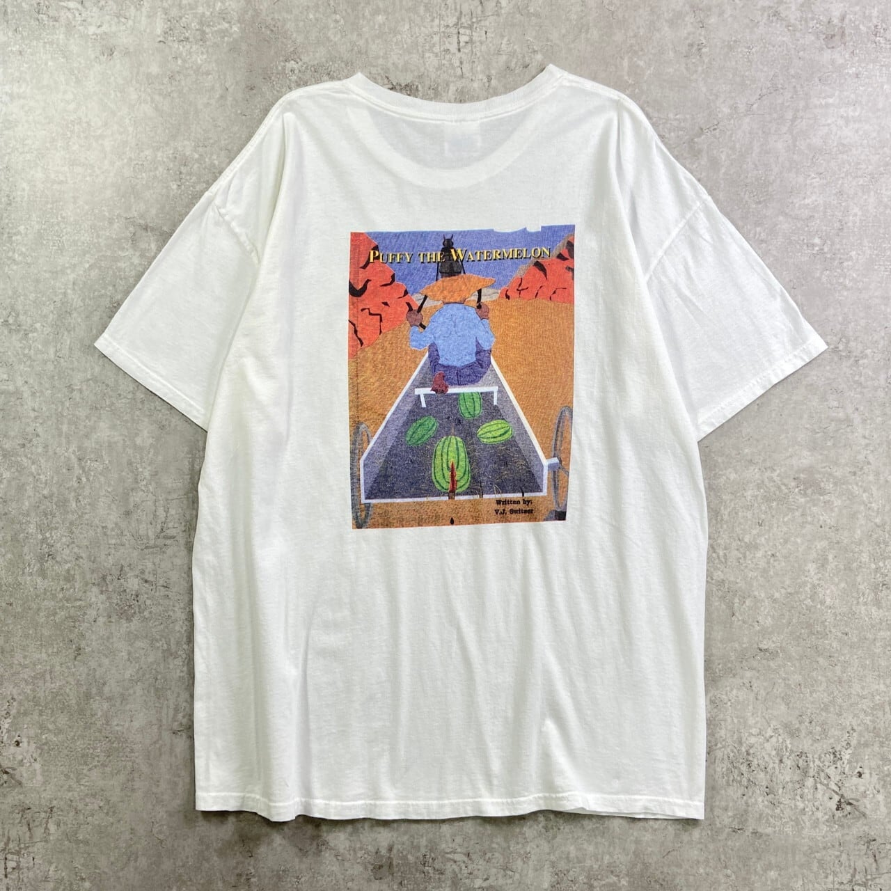 00年代 Vern Switzer ニュースペーパー プリントTシャツ PUFFY THE WATERMELON 児童書 アートワーク メンズXL 古着 00s ヴィンテージ VINTAGE 白【Tシャツ】/ホワイト【SS20】