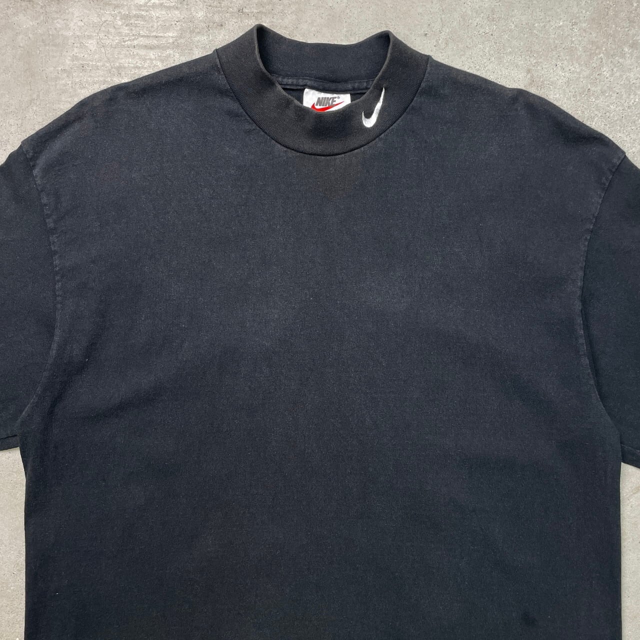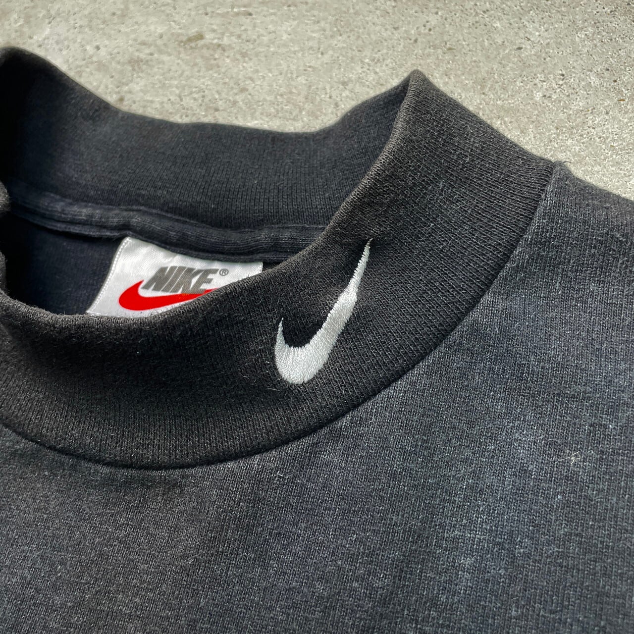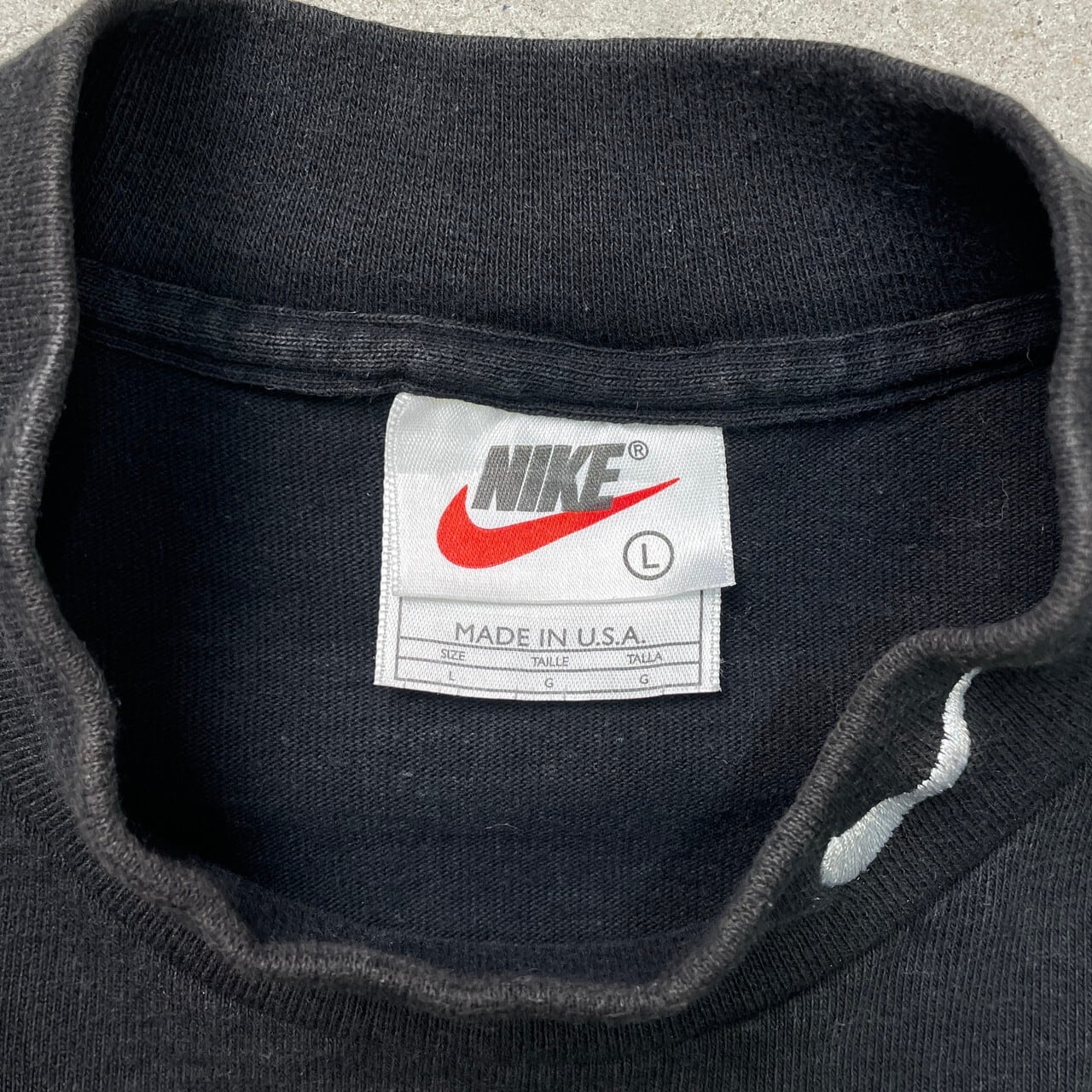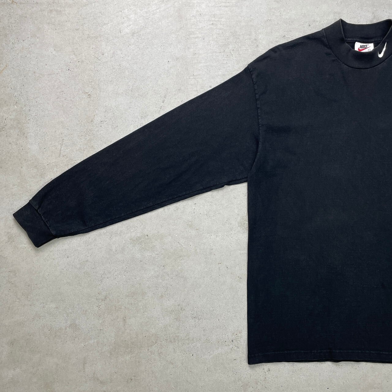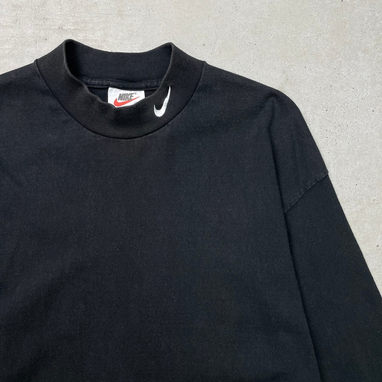 90年代 USA製 NIKE ナイキ スウォッシュ ワンポイントロゴ刺繍 長袖Tシャツ ロンT メンズL 古着 90s ヴィンテージ VINTAGE スモールスウォッシュ 長袖Tシャツ 黒【ロングTシャツ】/ブラック