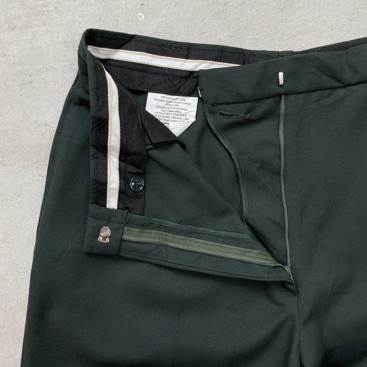 90年代 DSCP 米軍実品 ミリタリースラックス ドレスパンツ レディースW32 メンズ 古着 90s VINTAGE ヴィンテージ 深緑色【ミリタリーパンツ】/グリーン