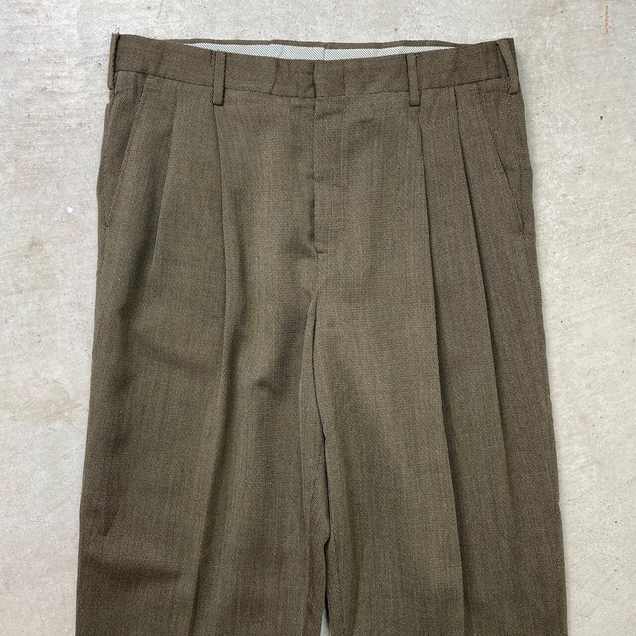 ■80~90年代 ALEEXANDER JULIAN CLOURS ワイドスラックス パンツ メンズW34 古着 80s 90s ヴィンテージ VINTAGE ロケットTALONジップ オリーブグリーン ブラウン【スラックス,スタプレ】/カーキグリーン
