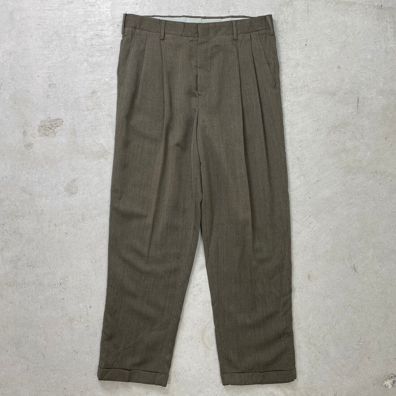80〜90年代 ALEEXANDER JULIAN CLOURS ワイドスラックス パンツ メンズW34 古着 80s 90s ヴィンテージ VINTAGE ロケットTALONジップ オリーブグリーン ブラウン【スラックス,スタプレ】/カーキグリーン