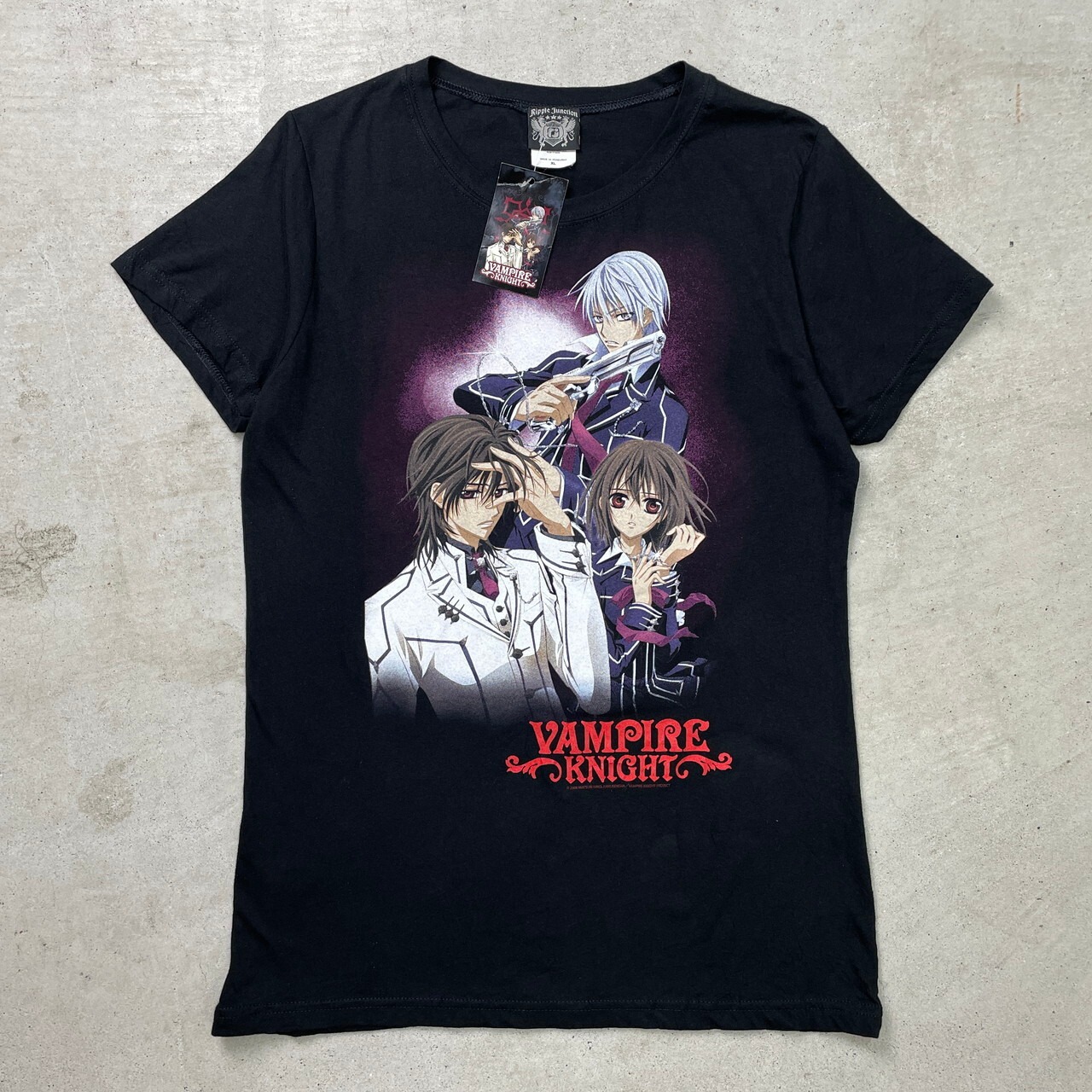 DEAD STOCK NOS 00年代 VAMPIRE KNIGHT ヴァンパイア騎士 アニメTシャツ キャラクタープリントTシャツ レディースM相当 メンズS相当 古着 00s Y2K 2008 漫画 黒【Tシャツ】/ブラック【SS50】【SS26-30】