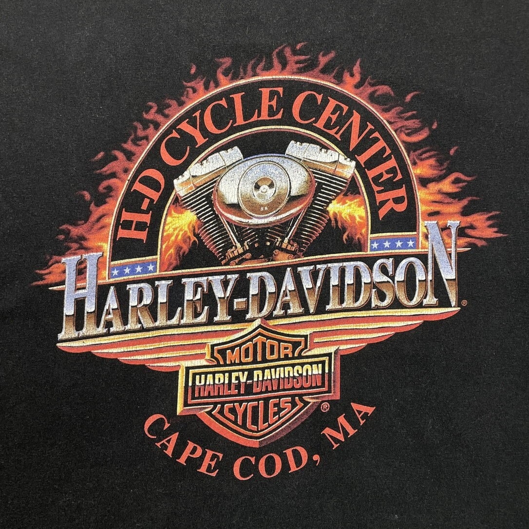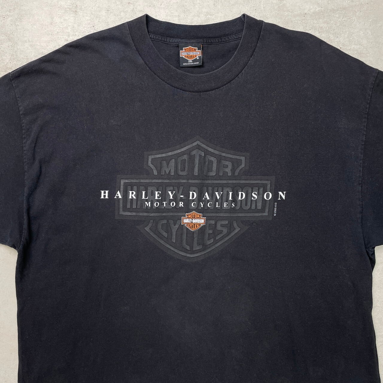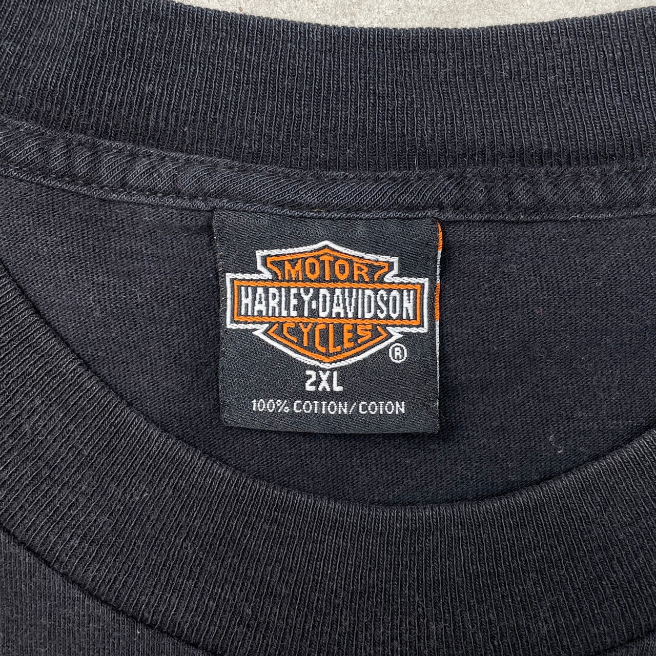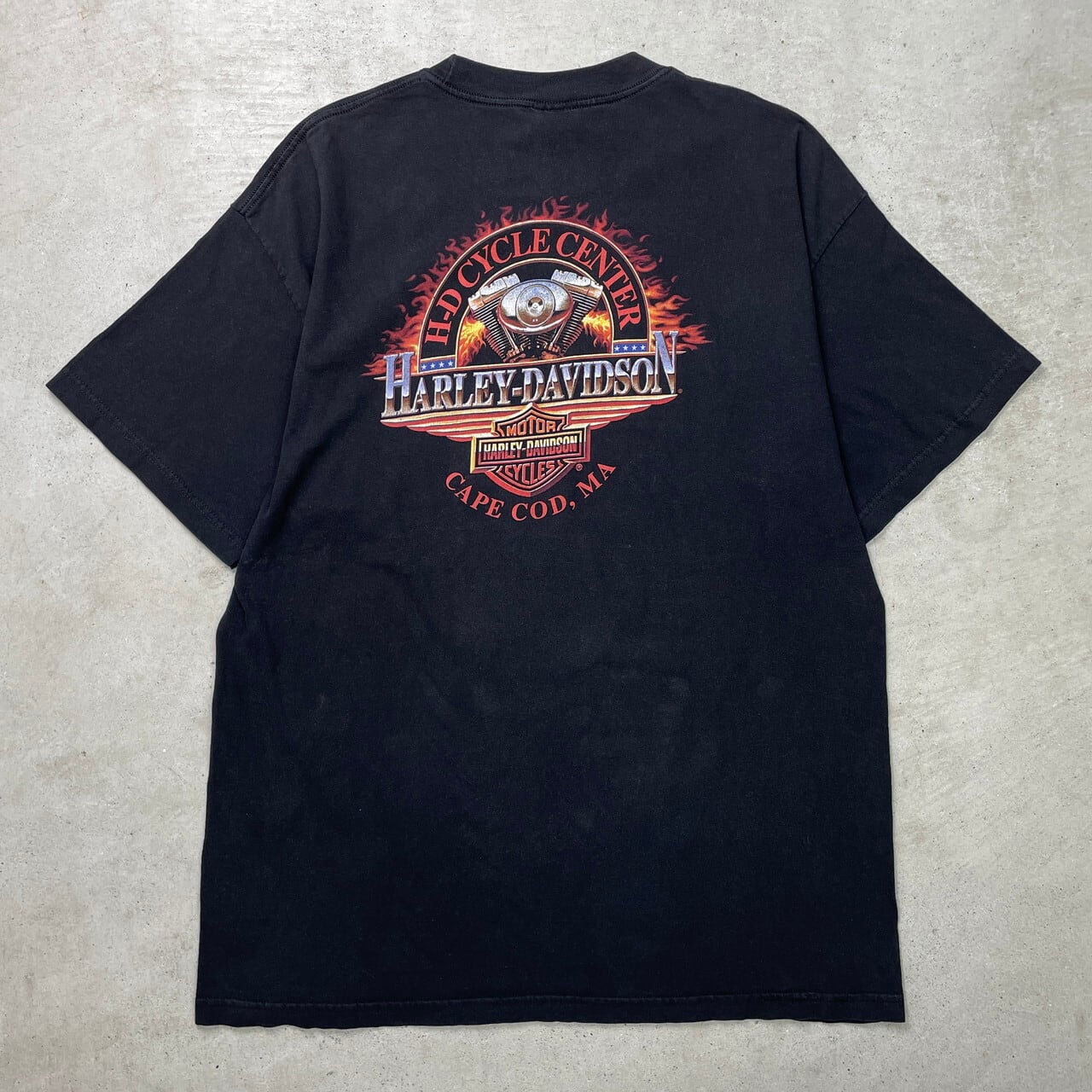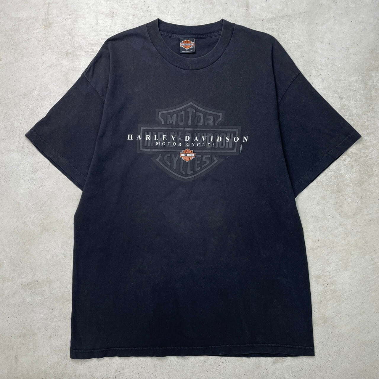 00年代 USA製 Harley-Davidson ハーレーダビッドソン ロゴプリントTシャツ ファイヤーパターン メンズ2XL 古着 00s Y2K ヴィンテージ VINTAGE バイク モーターサイクル 黒 ビッグサイズ 大きいサイズ【Tシャツ】/ブラック【SS50】