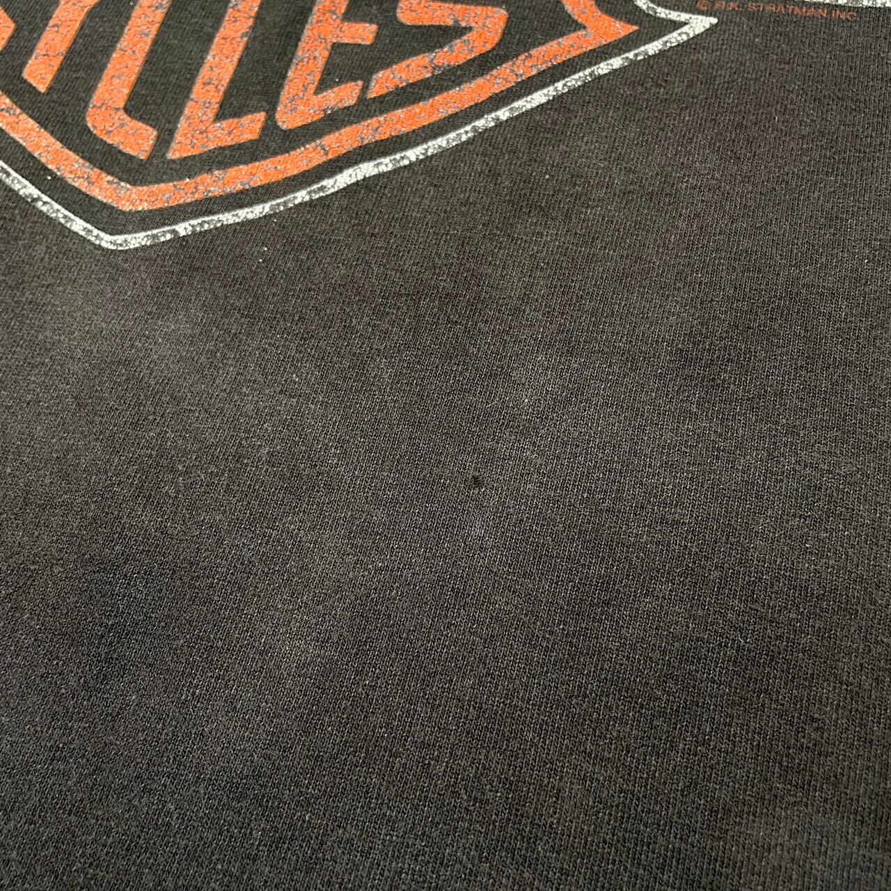 90年代 USA製 Harley-Davidson ハーレーダビッドソン ロゴプリントTシャツ メンズ3XL 古着 90s ヴィンテージ VINTAGE バイク モーターサイクル シングルステッチ フェードブラック 墨黒 大きいサイズ ビッグサイズ 【Tシャツ】/ブラック