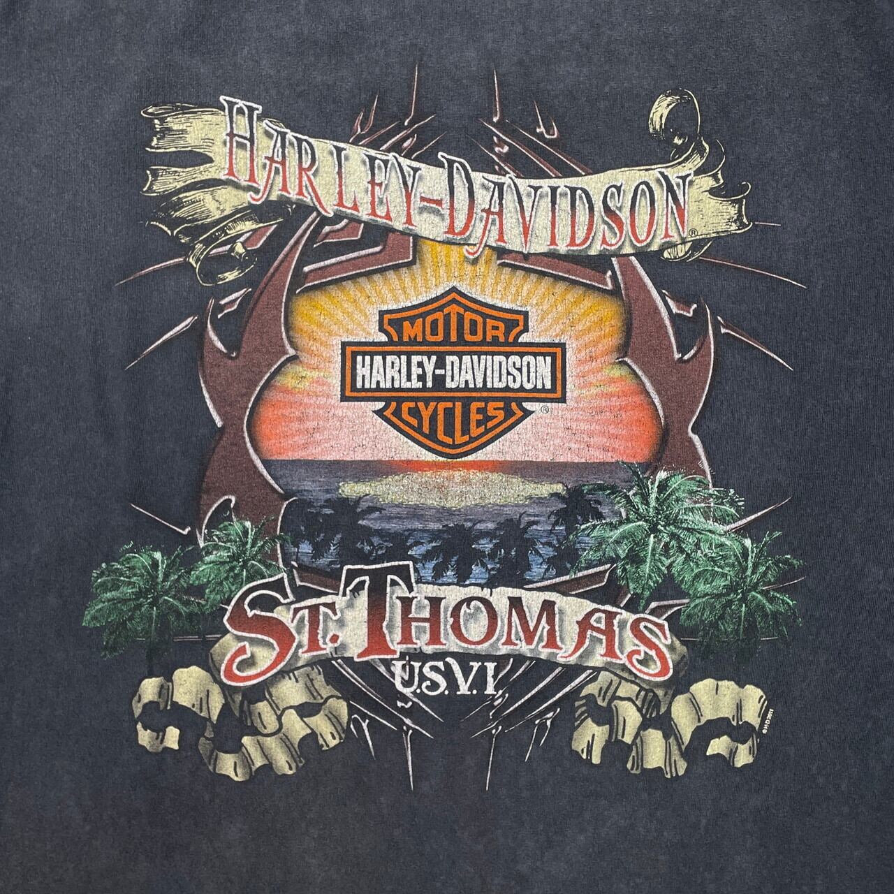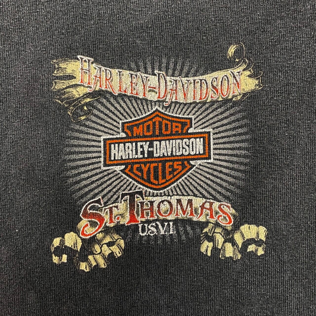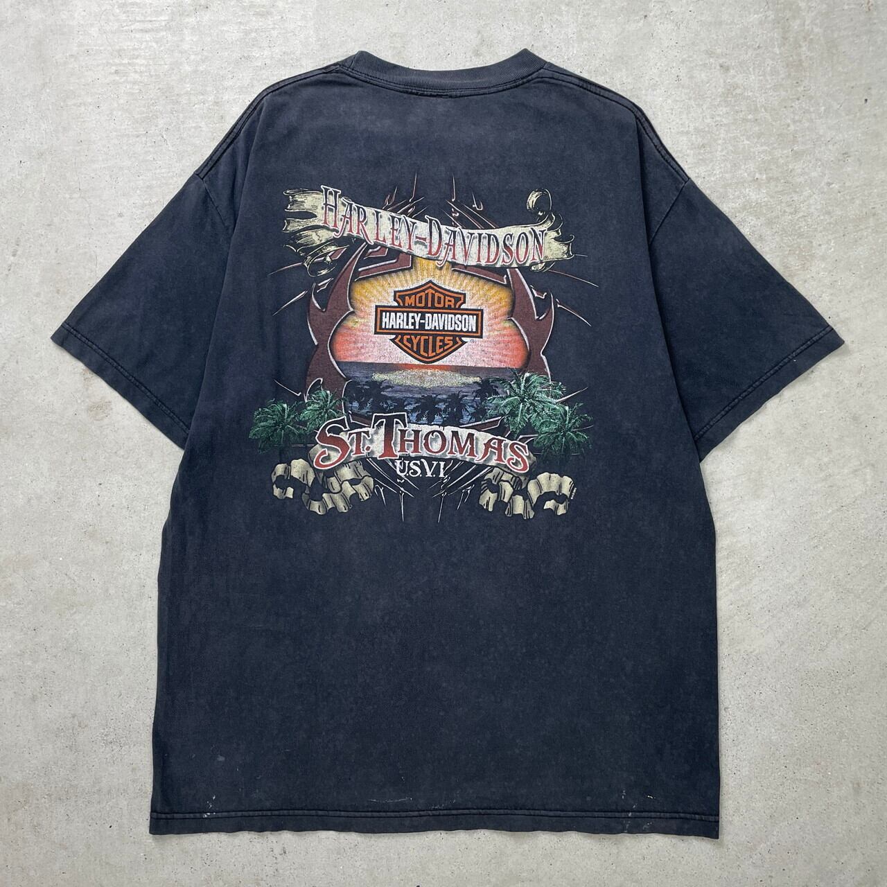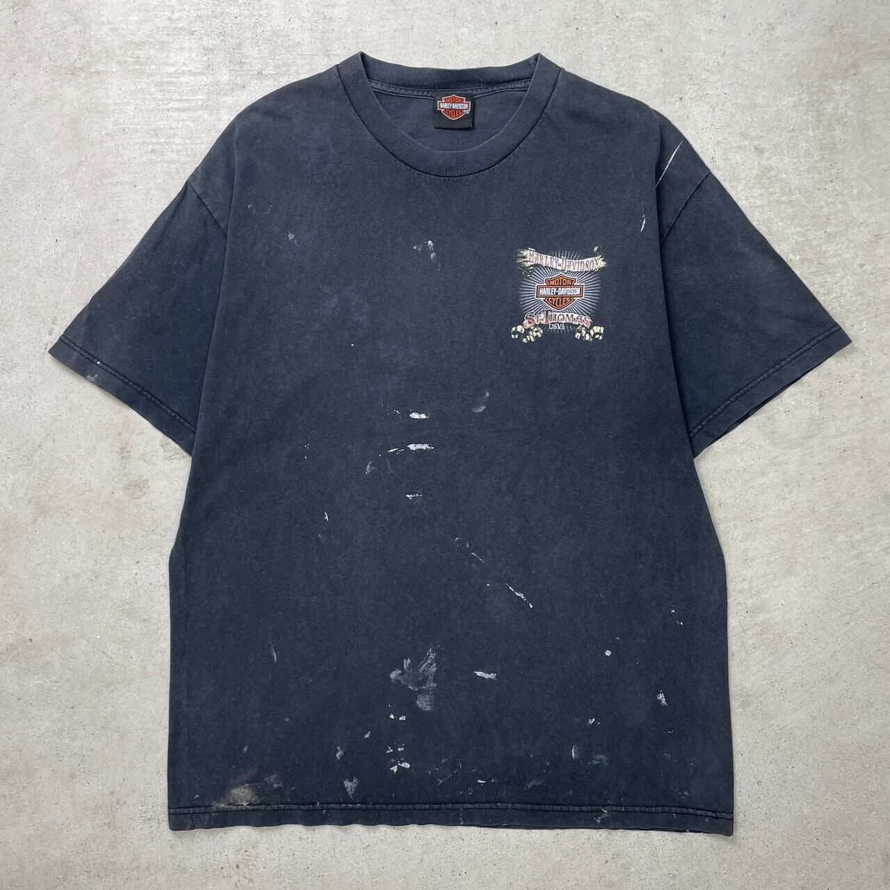 ■ペンキ Harley-Davidson ハーレーダビッドソン ロゴプリントTシャツ メンズXL 古着 バイク モーターサイクル フェードブラック 墨黒【Tシャツ】/ブラック
