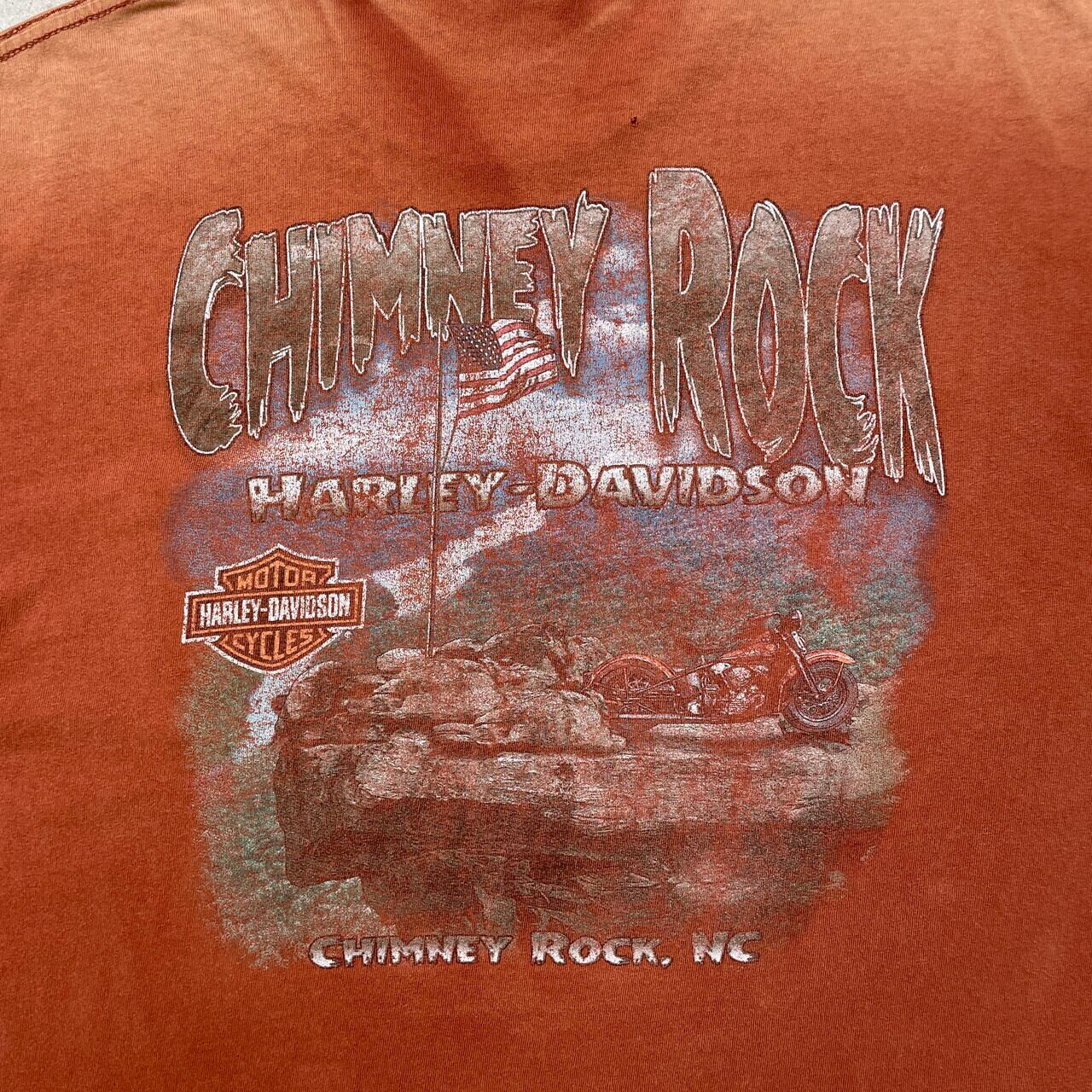 ■00年代 鬼フェード Harley-Davidson ハーレーダビッドソン ロゴプリントTシャツ ポケT メンズXL相当 古着 00s Y2K ヴィンテージ VINTAGE バイク モーターサイクル フェードオレンジ【Tシャツ】/オレンジ