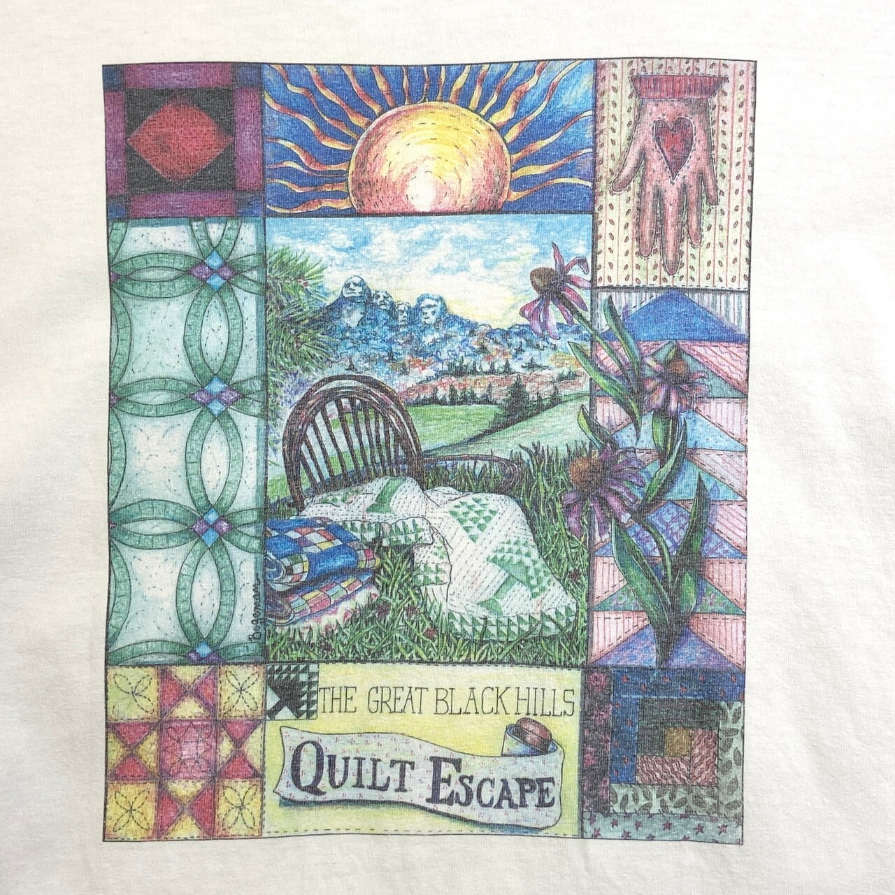 ■00年代 THE GREAT BLACK HILLS QUILT ESCAPE スーベニア アートプリントTシャツ メンズXL 古着 00s VINTAGE ヴィンテージ Y2K 白【Tシャツ】/ホワイト