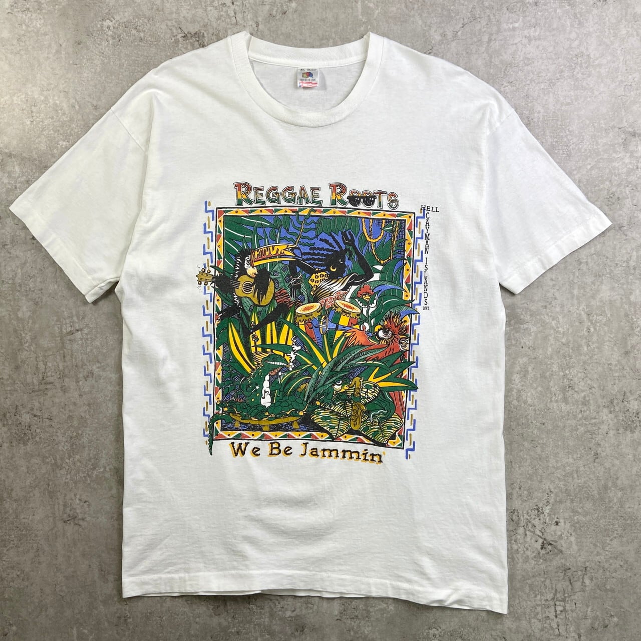 90年代 USA製 HELL CAYMAN ISLANDS スーベニア アートプリントTシャツ アニマル レゲエ ラスタ メンズXL 古着 90s VINTAGE ヴィンテージ シングルステッチ 動物 白【Tシャツ】/ホワイト【SS20】
