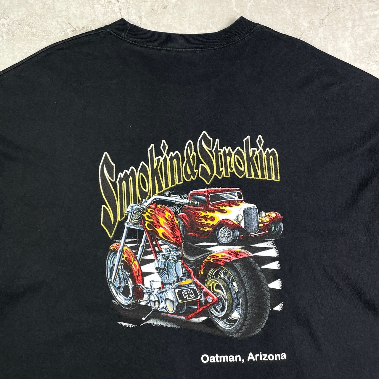 ■ROUTE66 SMOKIN&STROKIN モーターサイクル バイク プリントTシャツ メンズ3XL 古着 黒色【Tシャツ】/ブラック